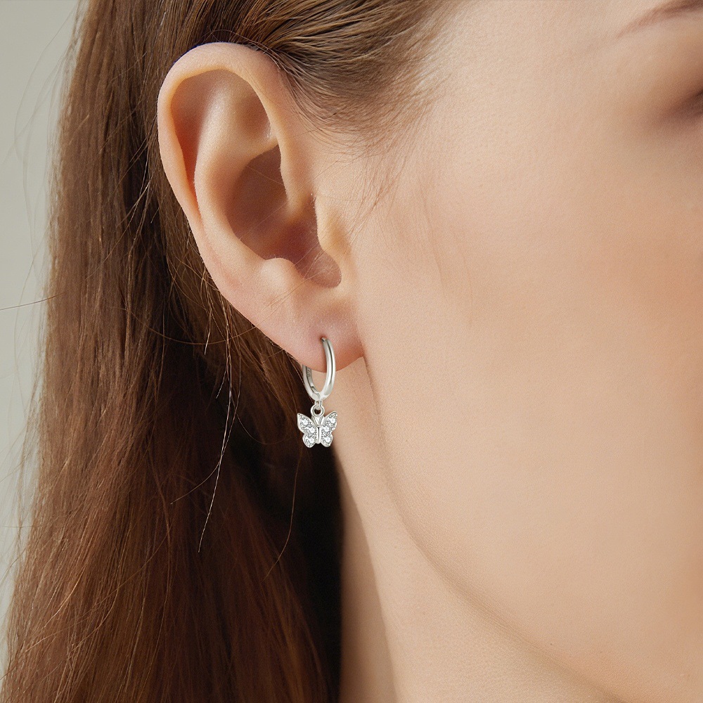 Stock a perennial favorite with our Wholesale 925 Sterling Silver Pave CZ Butterfly Drop Earrings. "Butterfly" motifs are an evergreen trend in the fashion jewelry market, appealing strongly to the youth and "Coquette" aesthetic demographics. This SKU features a high-quality "Pave Setting" that elevates the perceived value of the piece. Combined with the popular "Huggie" hoop style, these earrings are a low-risk, high-turnover item essential for spring and summer collections.
