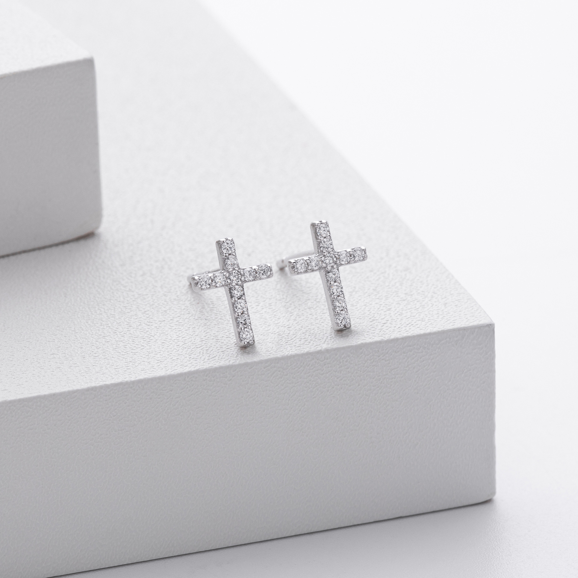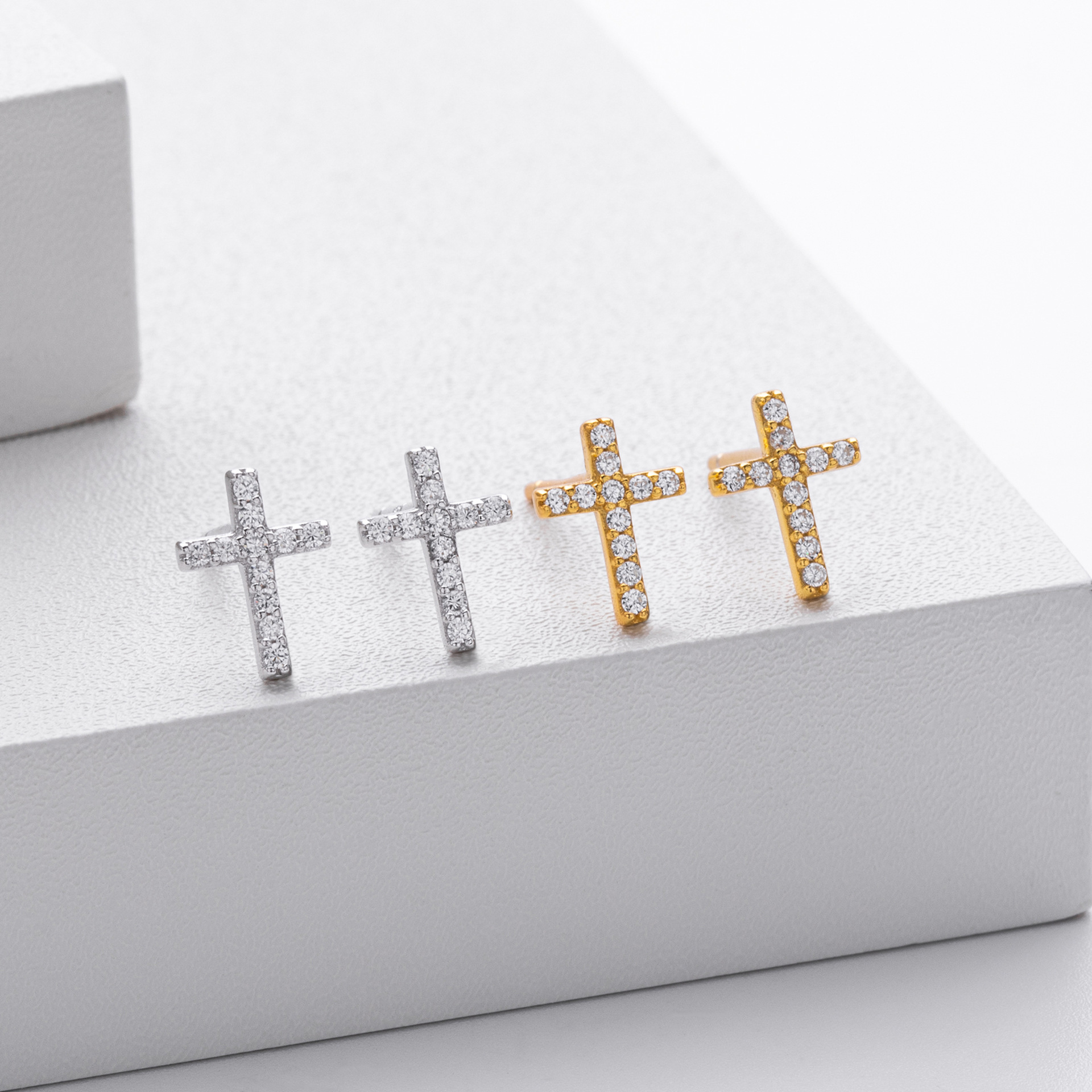 Ensure your inventory includes a perennial best-seller with our Wholesale 925 Sterling Silver Pave CZ Cross Studs. Religious and spiritual jewelry is a staple category with consistent demand year-round. This SKU elevates the simple cross motif with high-quality "Pave Setting" Cubic Zirconia, offering a luxurious look at an accessible price point. Manufactured from solid S925 sterling silver, these studs are a safe, high-turnover investment suitable for a wide range of customers.