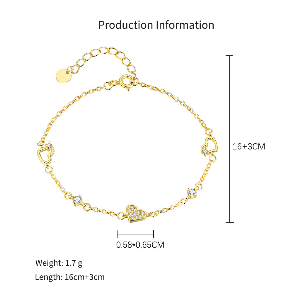 925 Sterling Silver Pave CZ Heart Layered Necklace Bracelet Set 140500001