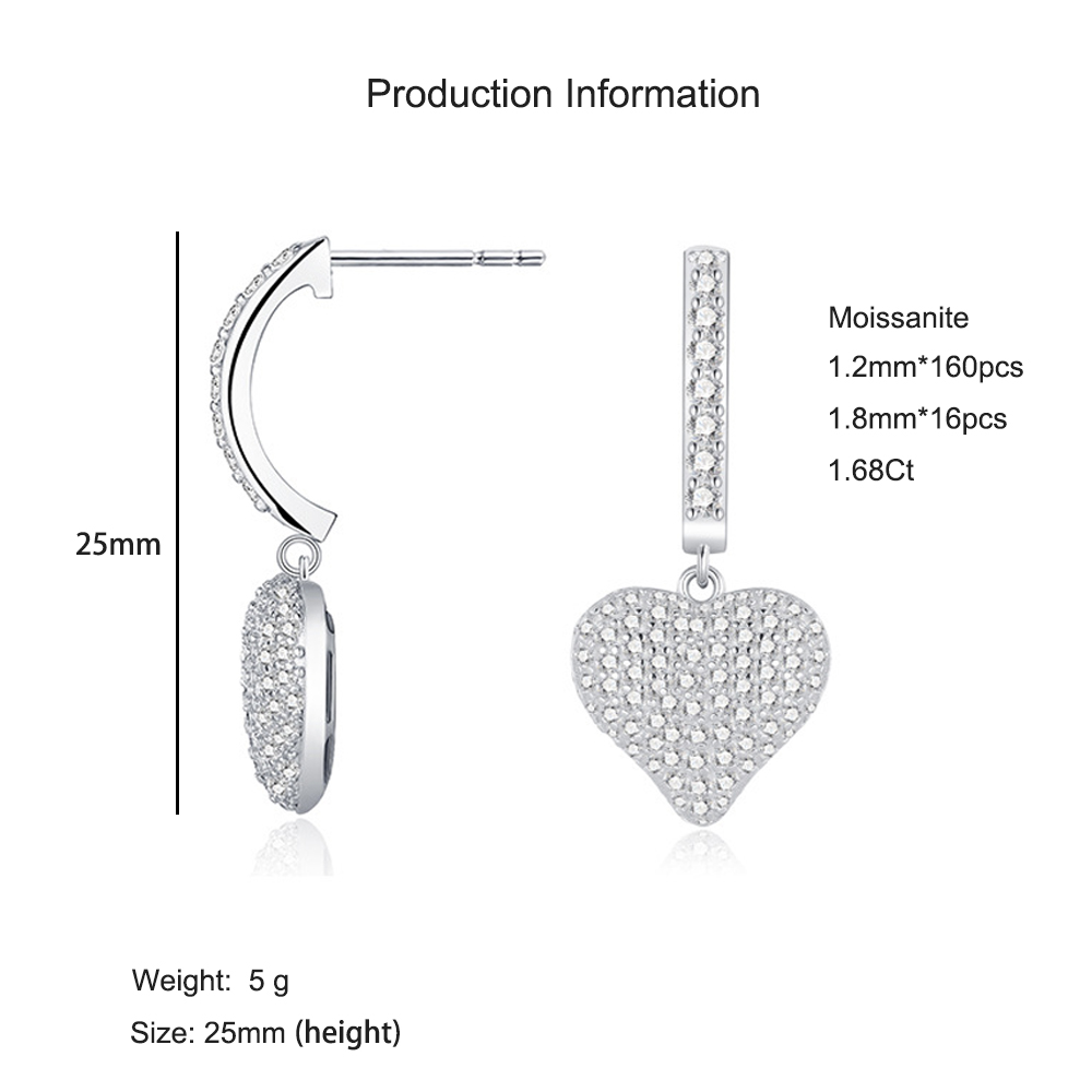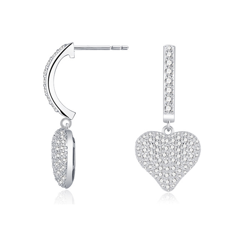 925 Sterling Silver Paved Heart Moissanite Earring 110100041