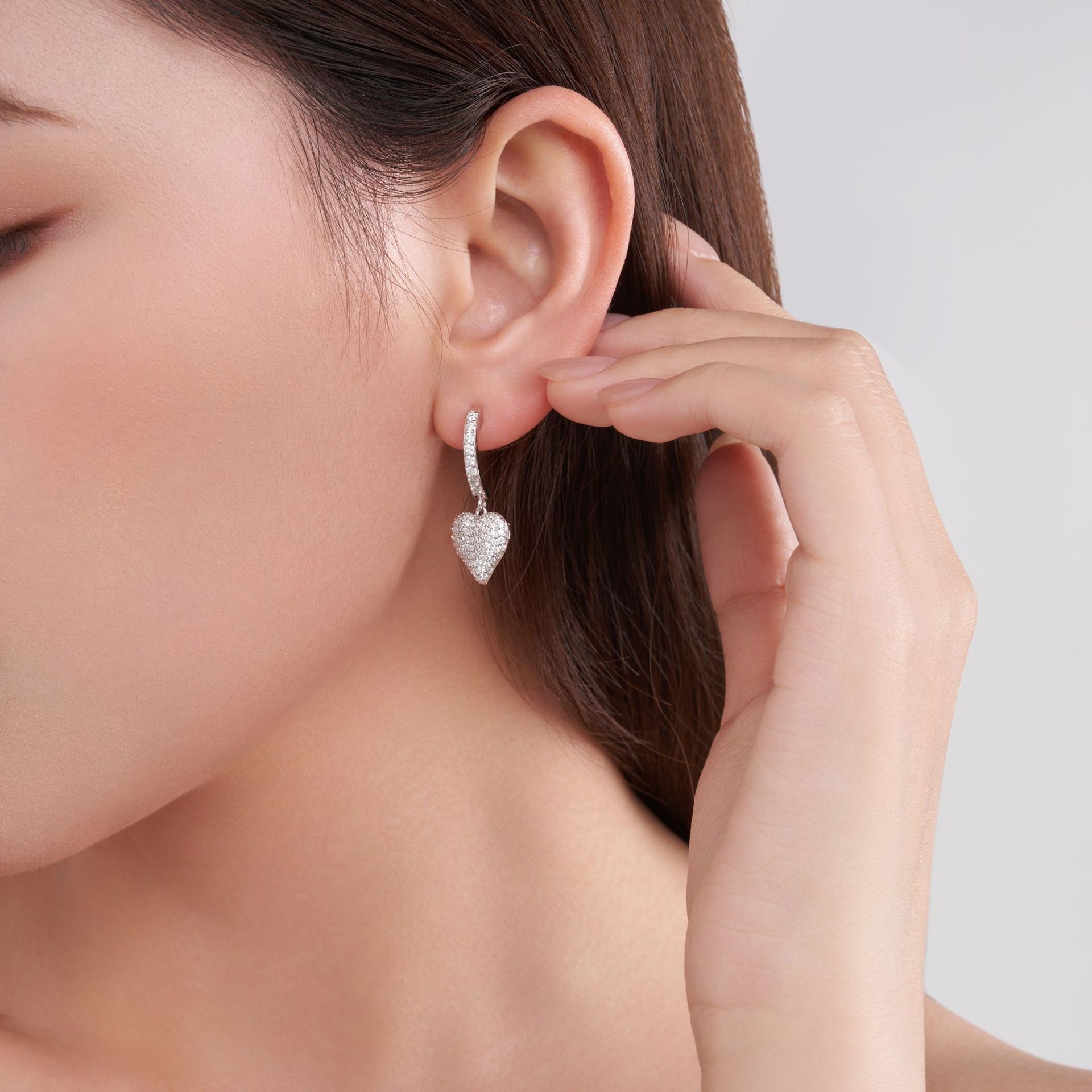 Stock up on these best-selling 925 sterling silver moissanite heart earrings with a stunning 3D pave design. A top choice for jewelry retailers, boutiques, and online stores offering romantic, luxury-inspired jewelry. Available in bulk at competitive wholesale prices.