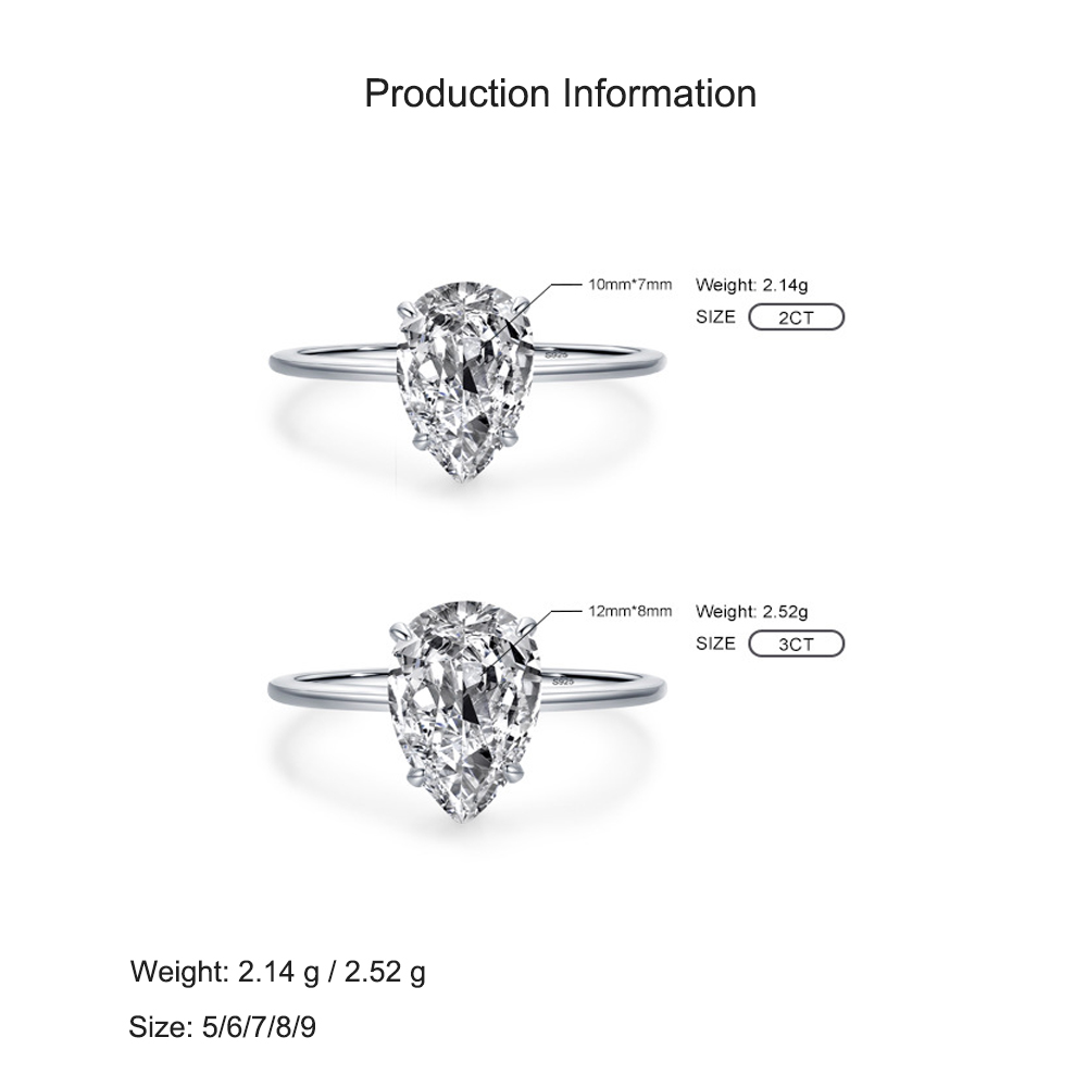 925 Sterling Silver Pear Cut 2/3CT Teardrop CZ Ring 70200333
