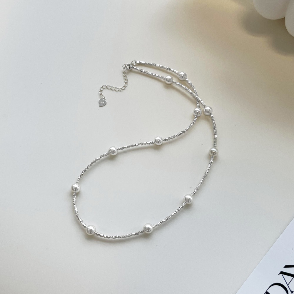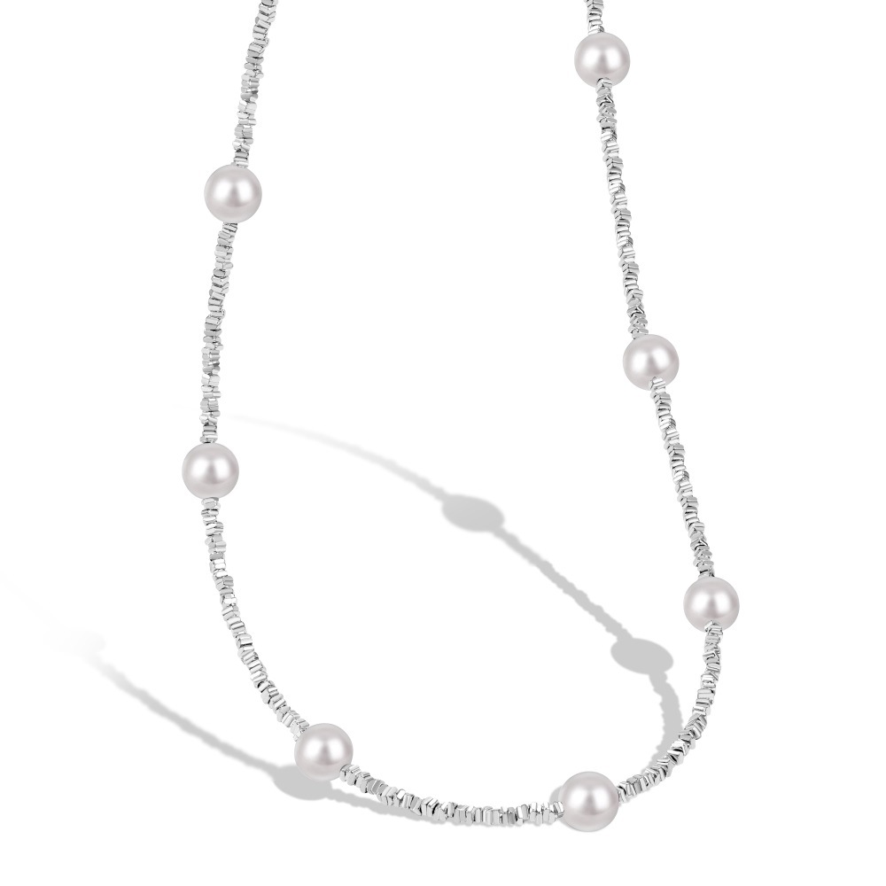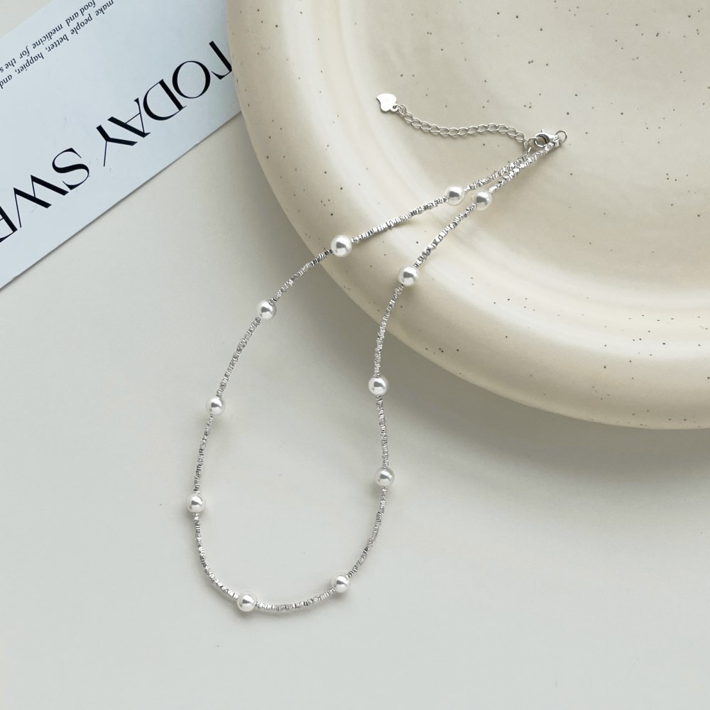 925 Sterling Silver Pearl Beads Chain Necklace 80100017