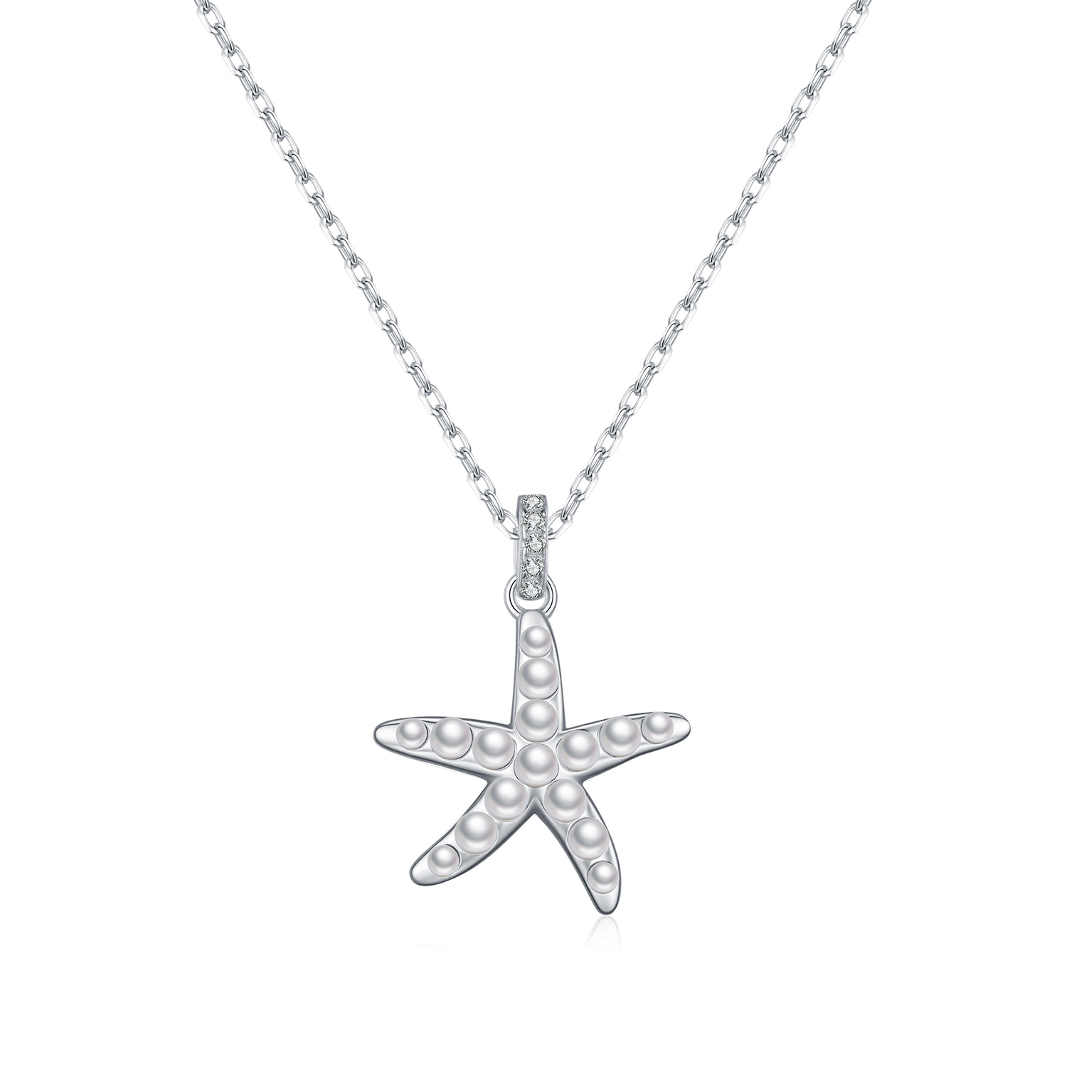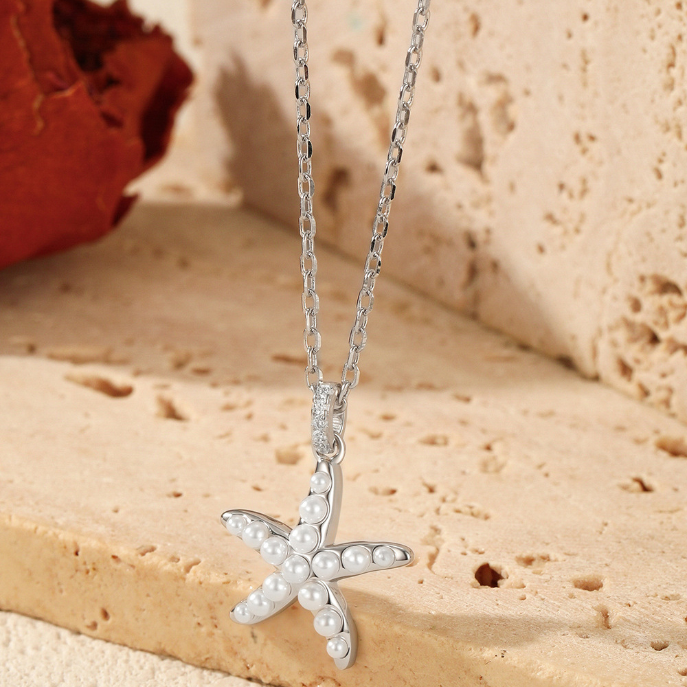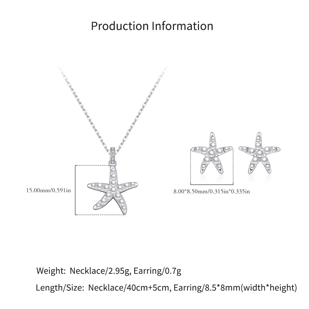 925 Sterling Silver Pearl Starfish Earring Necklace Set 140200013