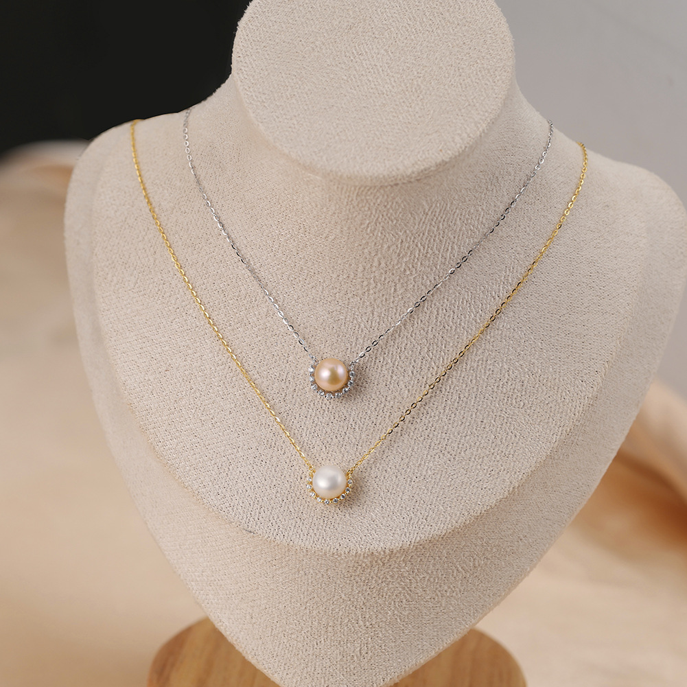 Source a high-demand, elegant design with our 925 Sterling Silver Pearl & Zirconia Necklace. This piece features a beautifully crafted pendant with a genuine freshwater pearl and a half-moon setting of sparkling cubic zirconia stones, a timeless and highly marketable combination. Crafted from authentic 925 sterling silver and available in both a classic silver and a durable gold-plated finish, this necklace offers excellent quality and broad market appeal. This is a reliable and profitable item for boutiques and online stores. Available for bulk purchase at competitive wholesale prices.