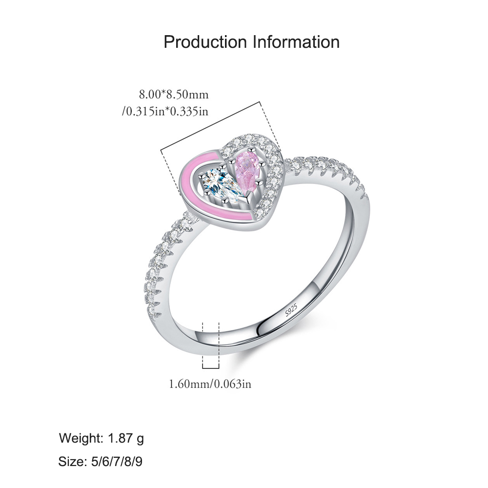 925 Sterling Silver Pink Enamel Double Gemstone Heart Ring 70100430