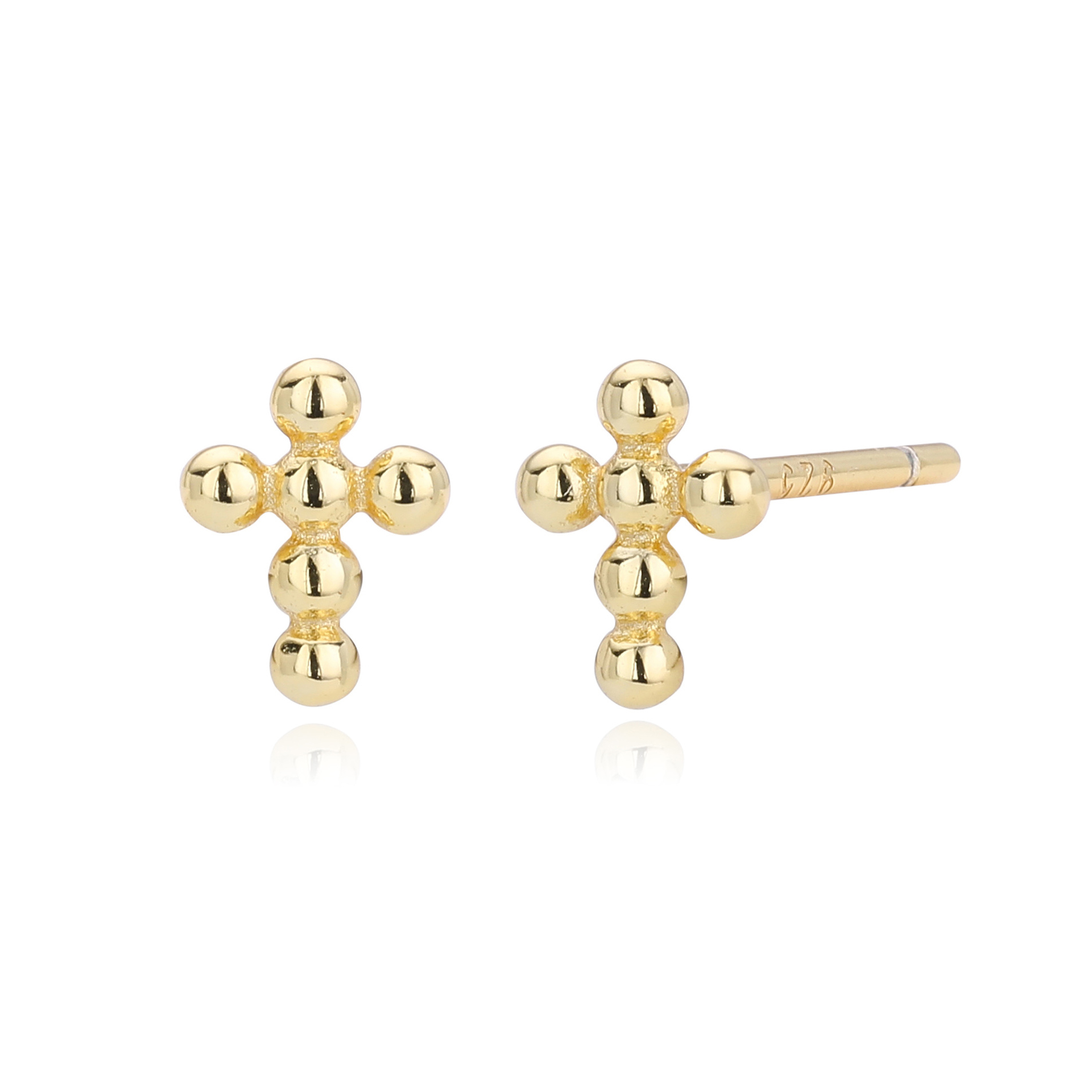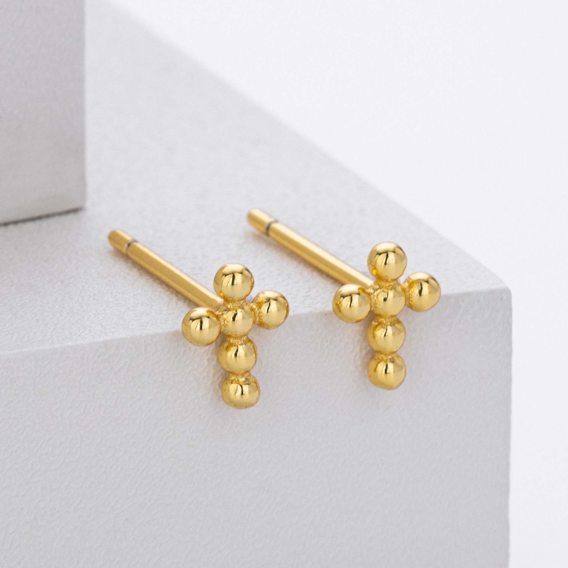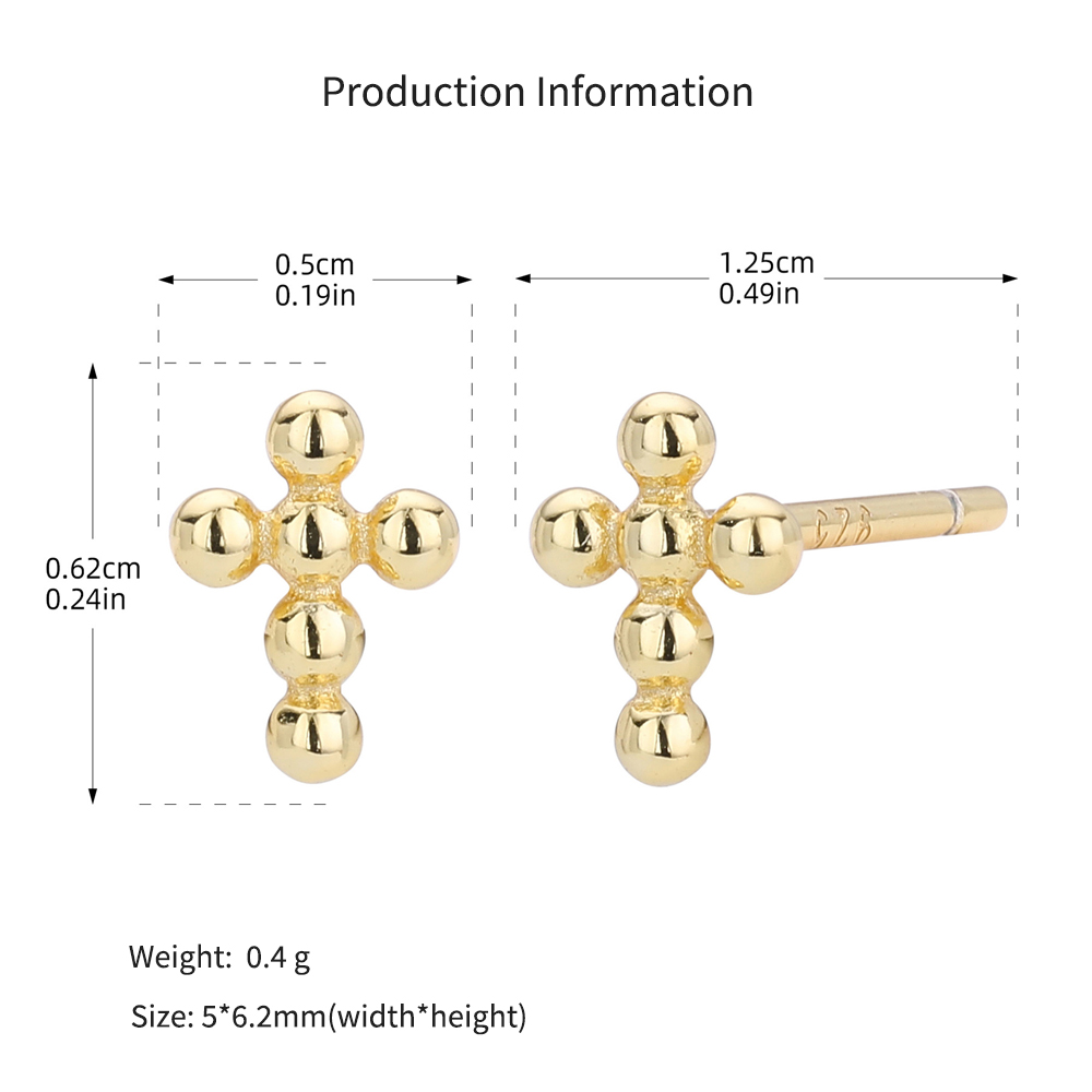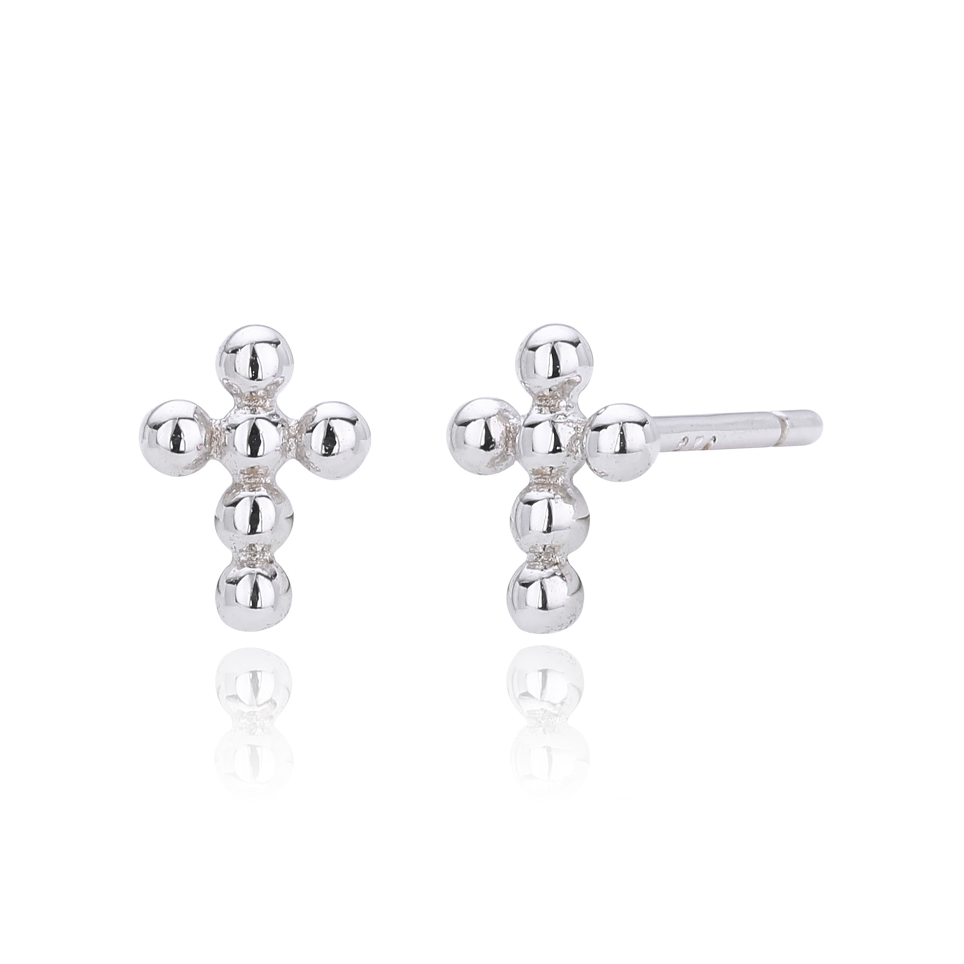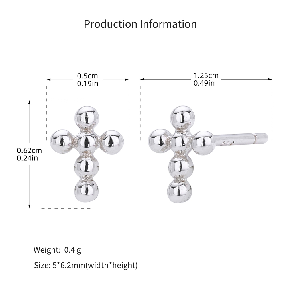 tock a timeless essential with our Wholesale 925 Sterling Silver Polished Beaded Cross Studs. Religious and spiritual motifs are consistent sellers, and this SKU updates the traditional cross with a modern "beaded" texture. The design is simple enough for daily wear but distinct enough to stand out in a display case. Manufactured from solid S925 sterling silver, these studs are a versatile, high-margin item suitable for customers of all ages.
