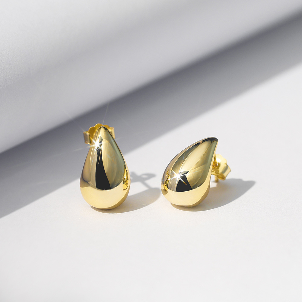 Crafted from premium 925 sterling silver, these polished teardrop earrings are plated in gold for a luxurious finish. Their smooth minimalist design makes them a versatile choice for jewelry retailers, offering both classic elegance and modern appeal to customers.
