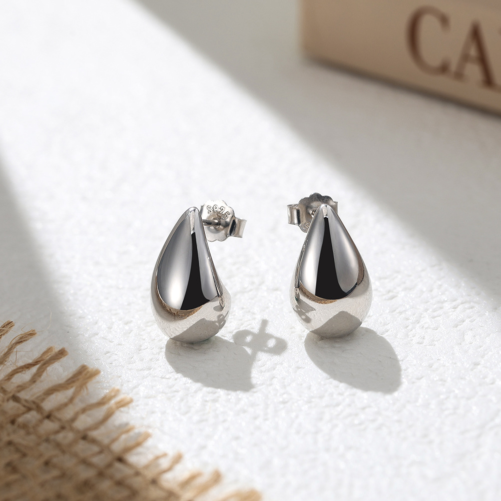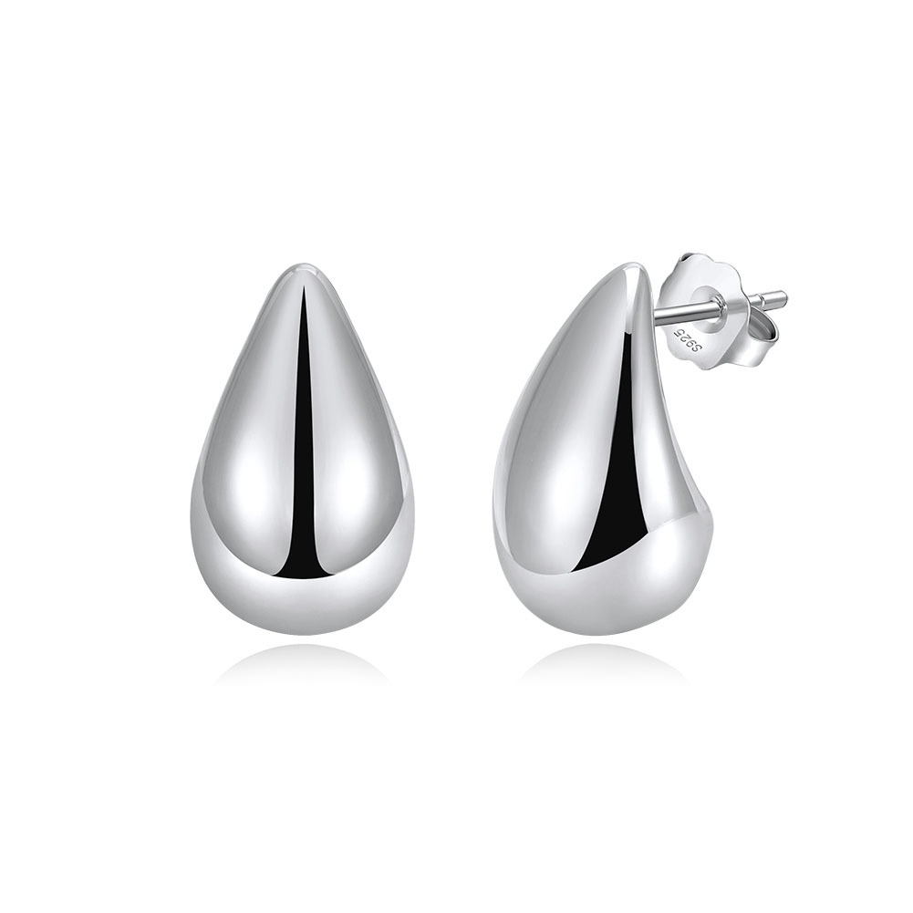 These 925 sterling silver teardrop earrings feature a smooth, polished surface with a gold-plated finish. Their sleek droplet shape adds a modern, elegant touch, making them perfect for both casual wear and formal occasions. A timeless accessory for women who love minimalist chic jewelry.