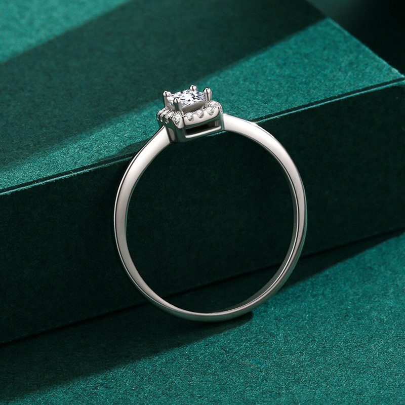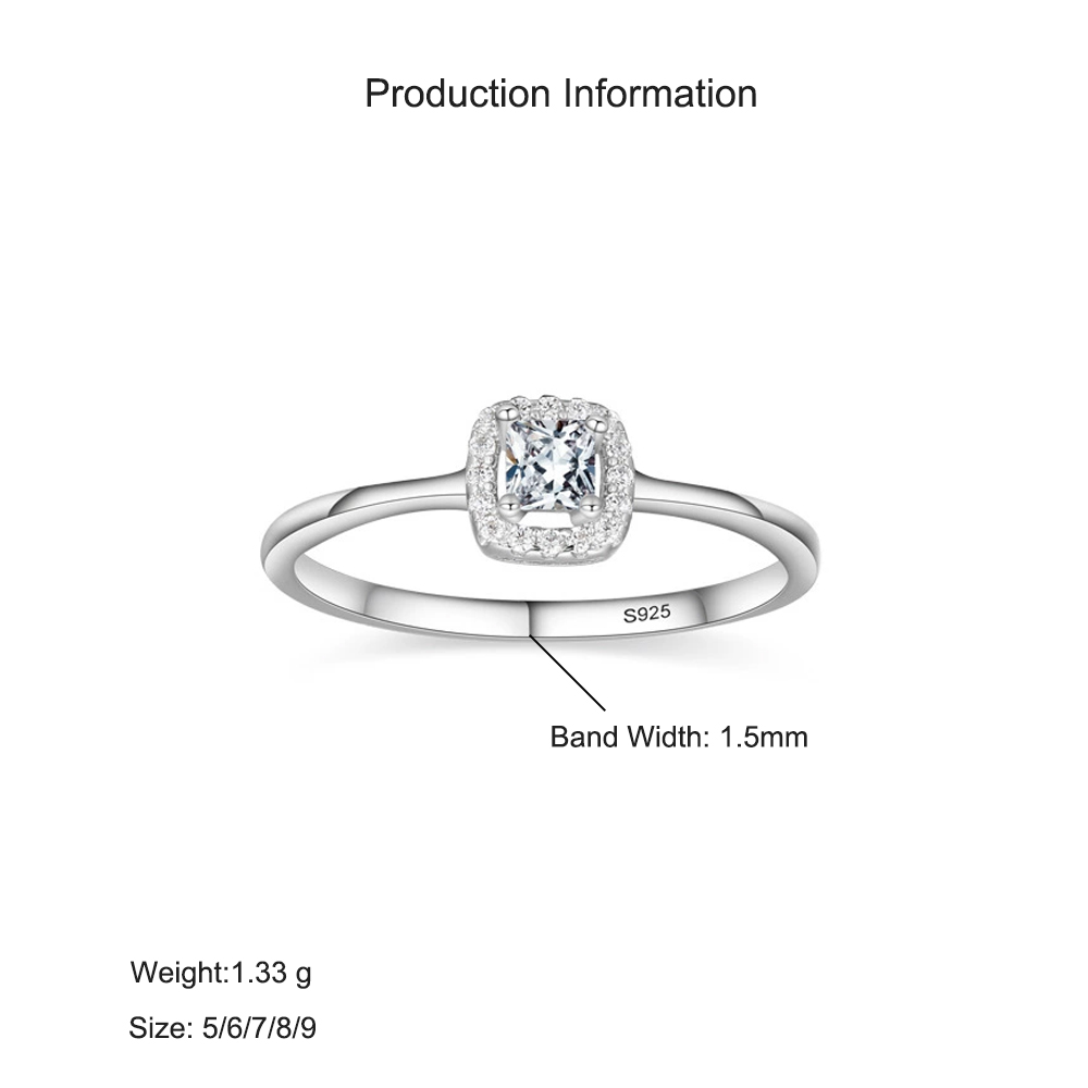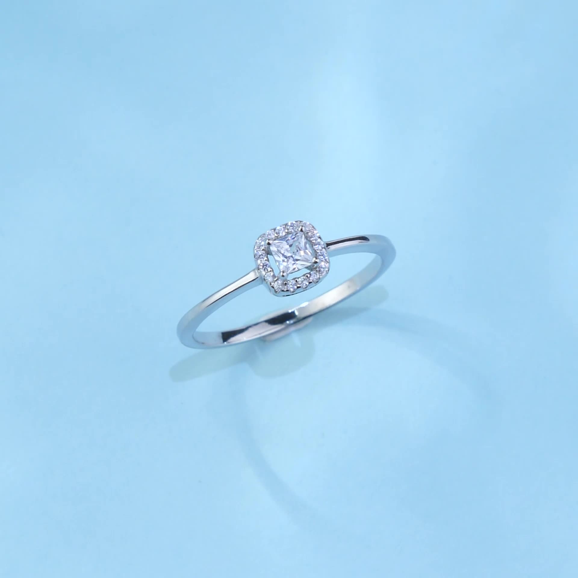 Delicate yet dazzling, this 925 sterling silver ring showcases a brilliant 1-carat princess-cut cubic zirconia at its center, surrounded by a shimmering halo of micro-pavé stones. The clean lines and balanced proportions give it a timeless elegance, perfect for modern brides or anyone who loves refined sparkle. Crafted in high-quality sterling silver with rhodium plating for extra shine and durability, it’s a piece that combines sophistication and everyday wearability.