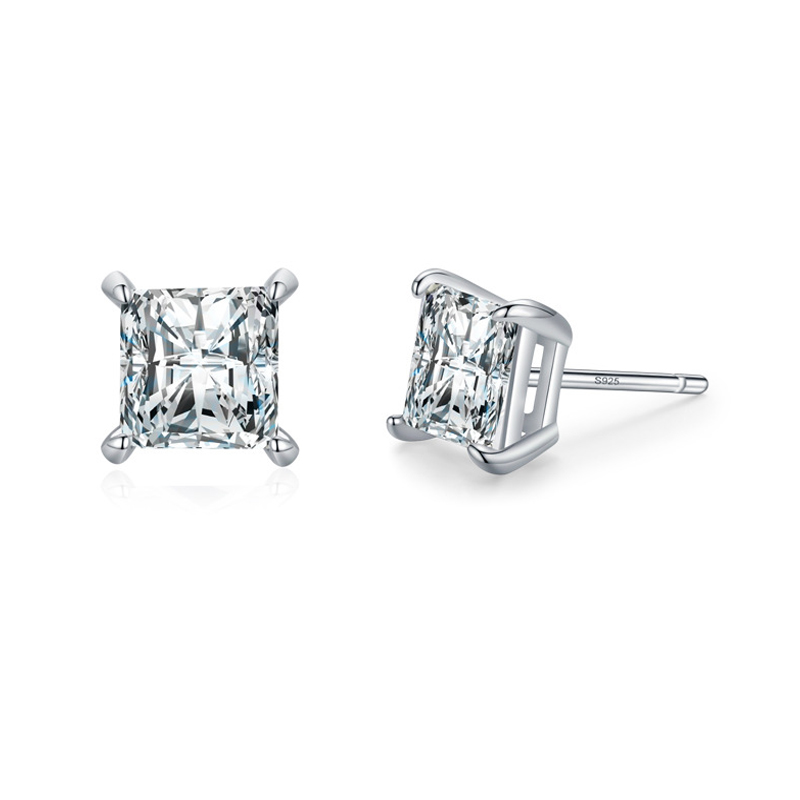925 Sterling Silver Princess-Cut Zircon Stud Earring 40200713