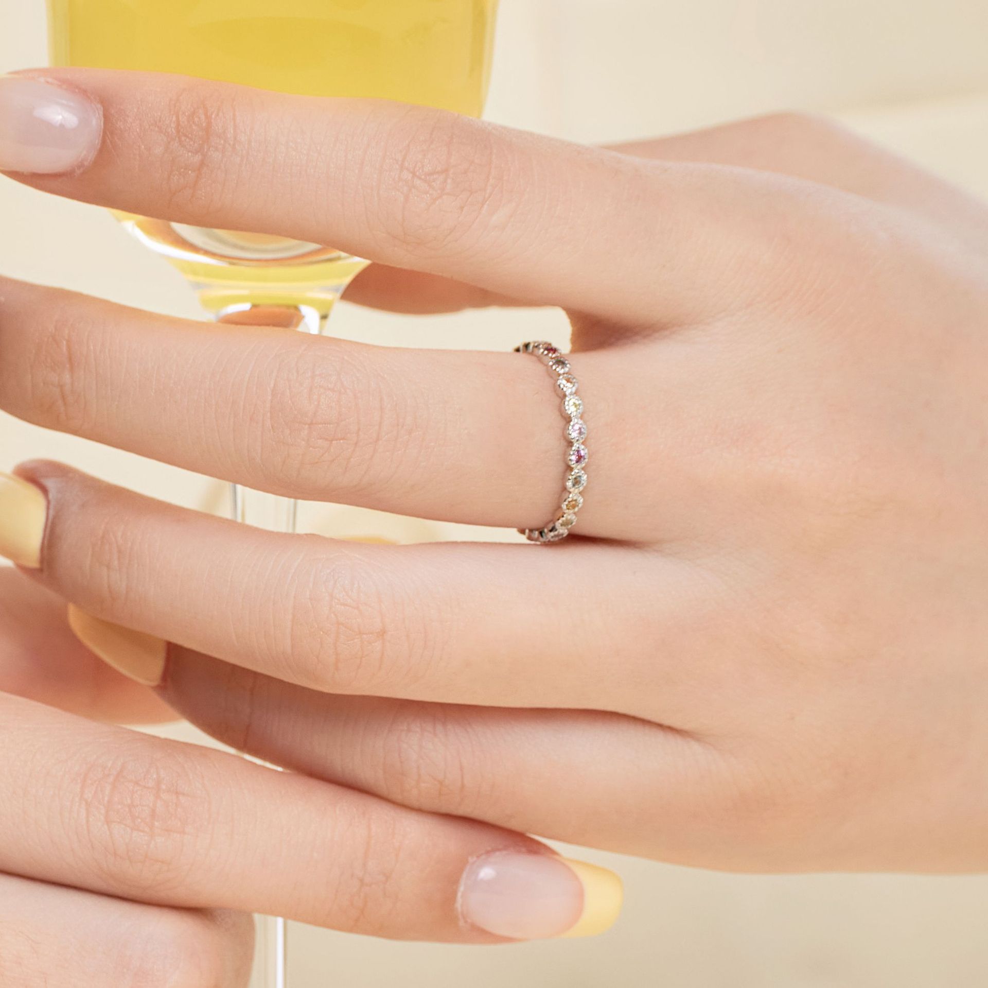 Product: Wholesale 925 Sterling Silver Rainbow Bubble Zirconia Band Ring 70100109.