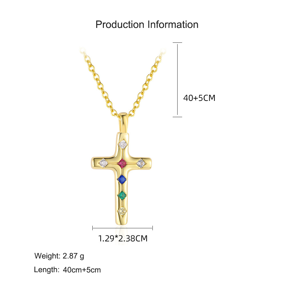 925 Sterling Silver Rainbow CZ Cross Charm Double Chain Necklace 80200522