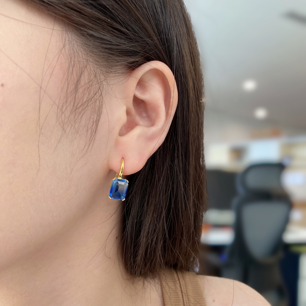 925 Sterling Silver Rectangle Crystal Dangle Earrings 50100010
