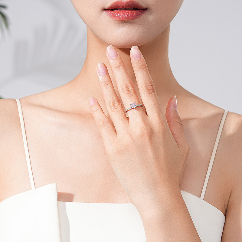 Sweet and elegant, this 925 sterling silver ring features a dazzling pink heart-shaped cubic zirconia, symbolizing love and tenderness. The slim band is delicately set with micro-paved CZ stones, adding extra brilliance from every angle. Crafted with high-quality sterling silver and plated with rhodium for long-lasting shine, this ring makes a perfect gift for anniversaries, Valentine’s Day, or as a charming self-love statement piece.