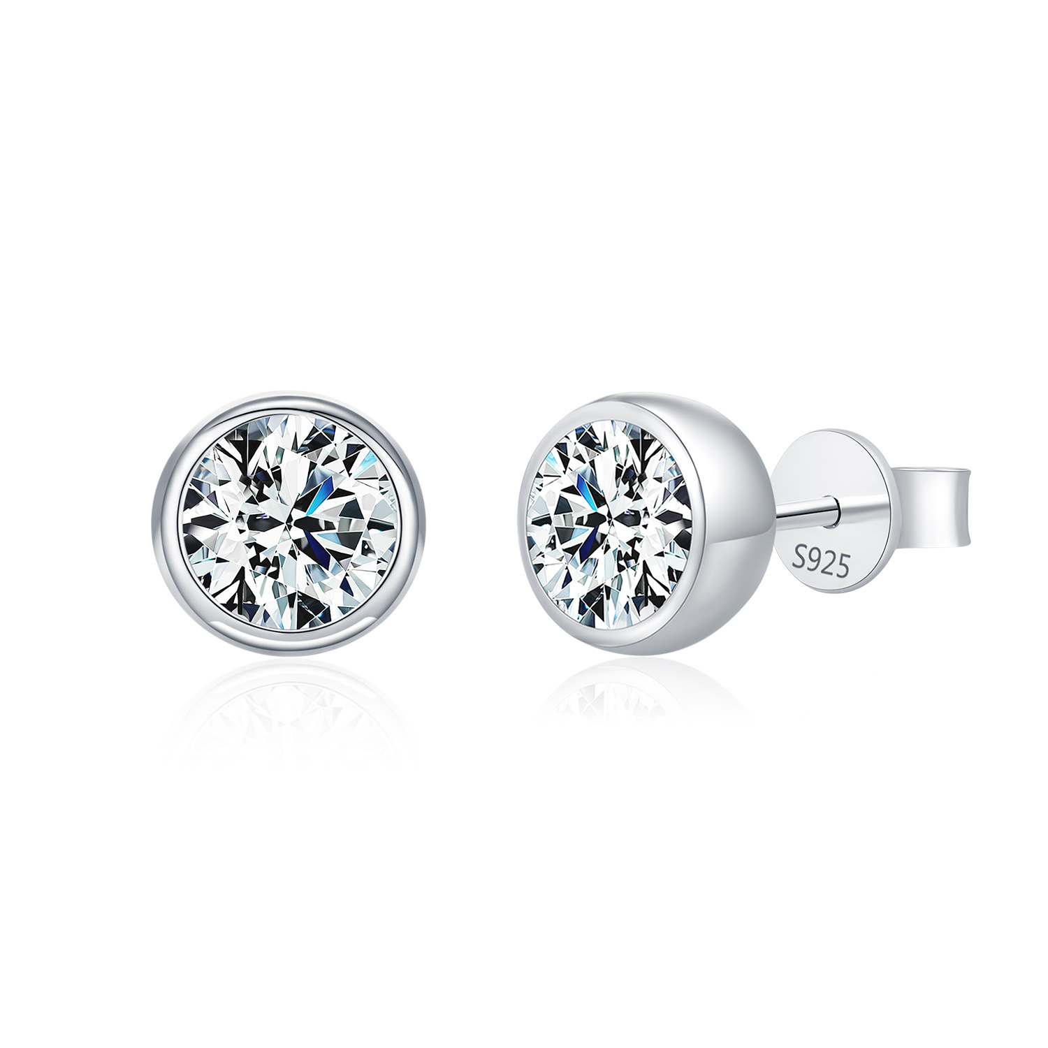 925 Sterling Silver Round Bezel Moissanite Stud Earrings 110100045 - image3925 Sterling Silver Round Bezel Moissanite Stud Earrings 110100045 - image4