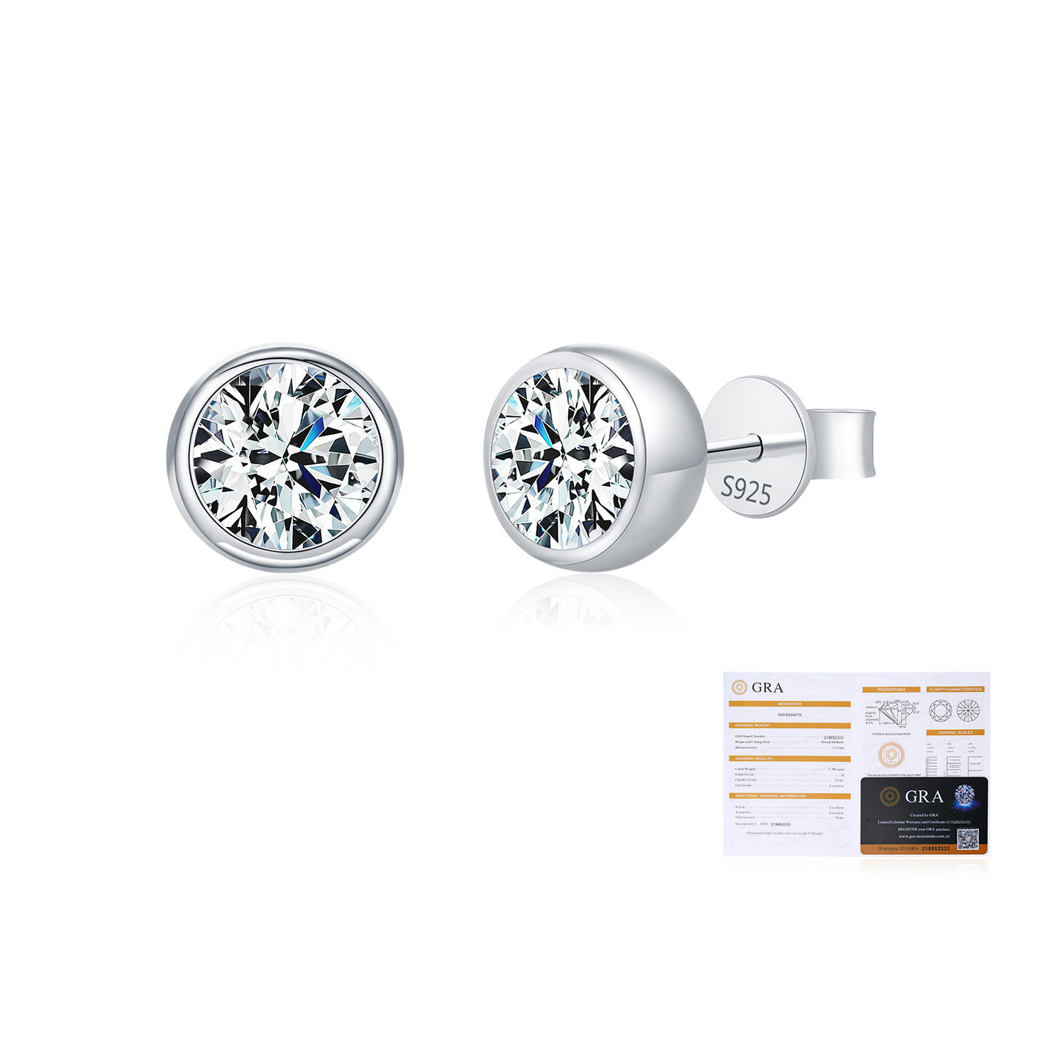 925 Sterling Silver Round Bezel Moissanite Stud Earrings 110100045 - image1925 Sterling Silver Round Bezel Moissanite Stud Earrings 110100045 - image2