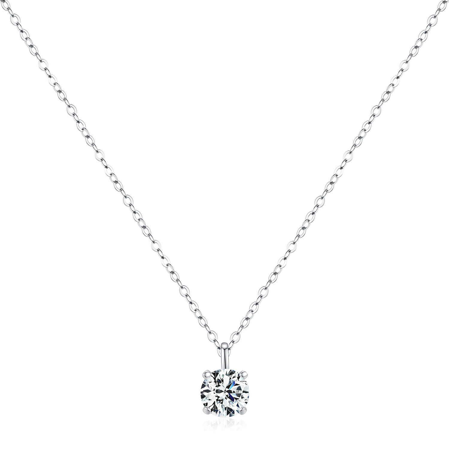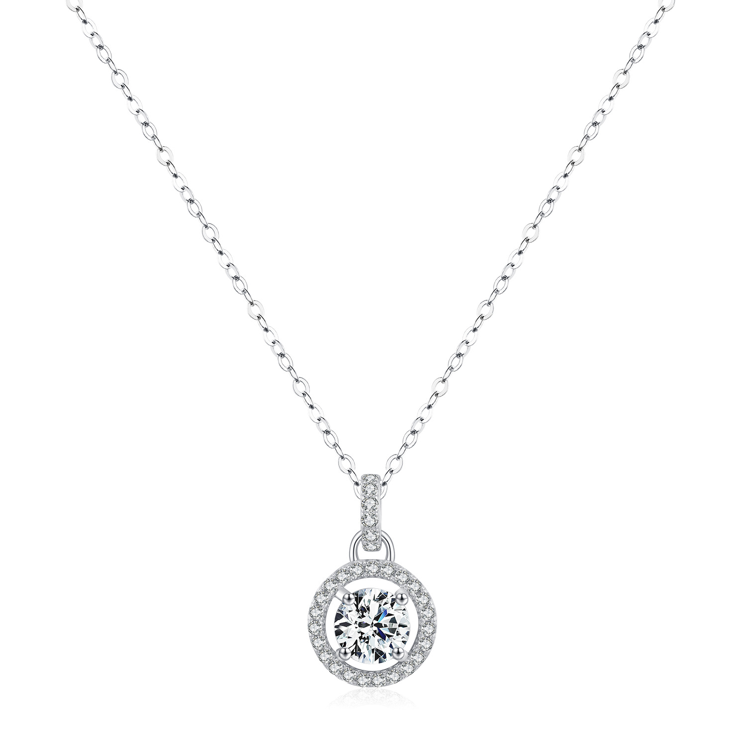 925 Sterling Silver Round Moissanite Necklace 110300006