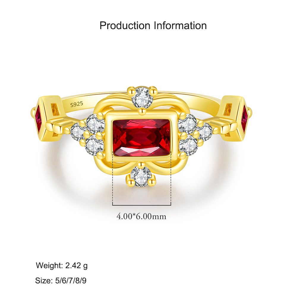 925 Sterling Silver Ruby Red Crown Zircon Ring 70200313