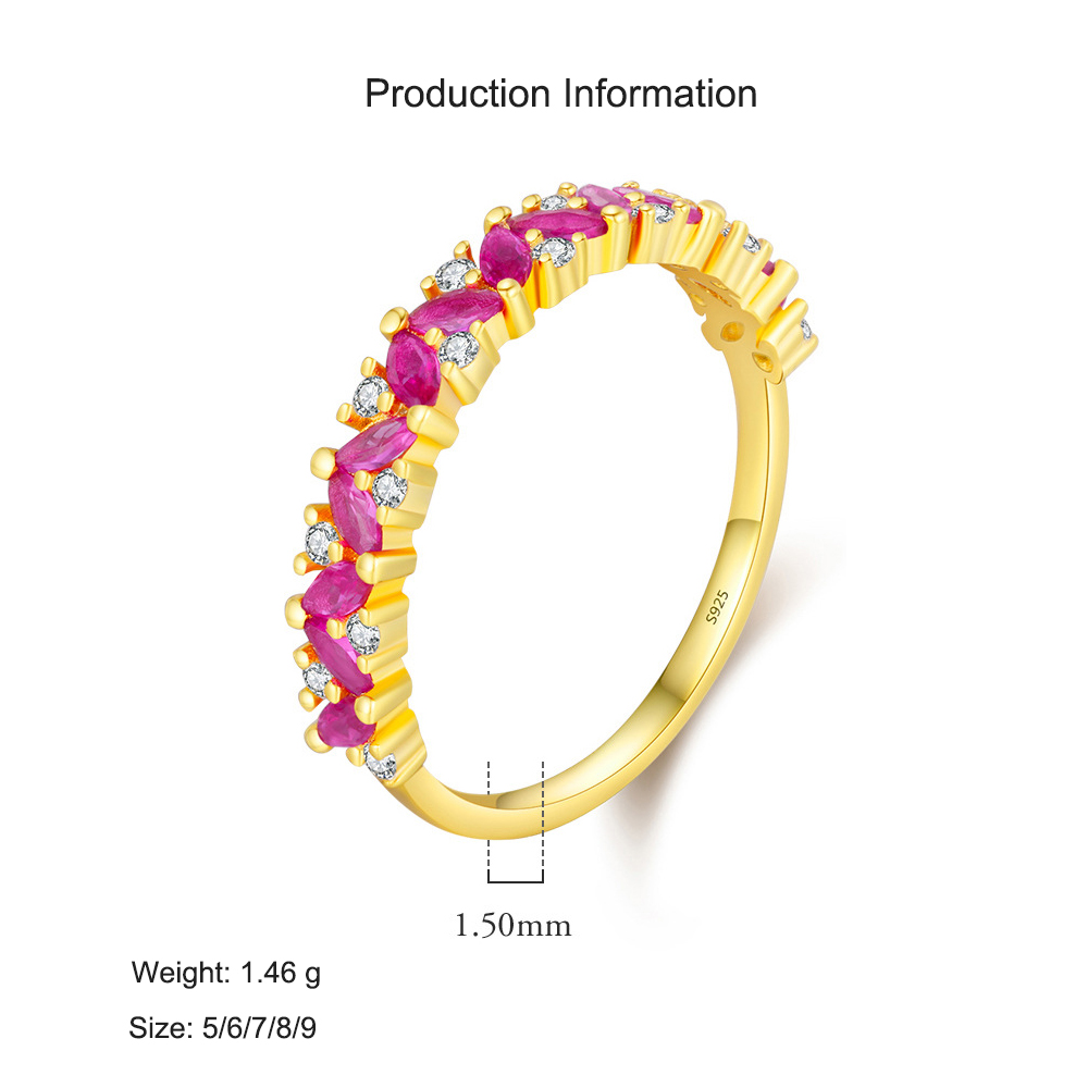Crafted from premium 925 sterling silver with a luxurious gold-plated finish, this ring features vivid ruby-red marquise-cut stones complemented by sparkling white accents. The design captures the elegance of the pigeon blood red gemstone look, offering a delicate yet eye-catching piece perfect for daily wear or special occasions. Its lightweight and comfortable fit makes it ideal as an index finger ring, stacking band, or statement jewelry. A must-have for women who love minimalist chic and trendy jewelry styles.