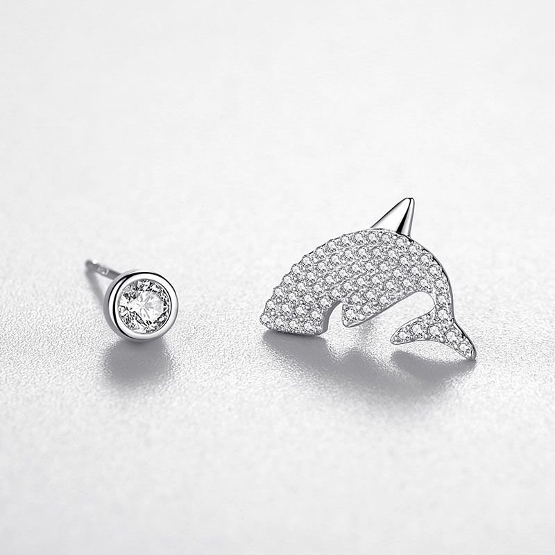 Make waves with these stylish 925 sterling silver shark earrings, designed for those who love bold and playful accessories. Featuring an asymmetrical design — one shimmering zircon stud and one shark silhouette set with brilliant micro-pavé zircons — these earrings bring a modern ocean-inspired charm to any outfit. Crafted from genuine sterling silver, they are hypoallergenic, durable, and comfortable for all-day wear. A perfect accessory for ocean lovers or anyone who enjoys unique animal jewelry.