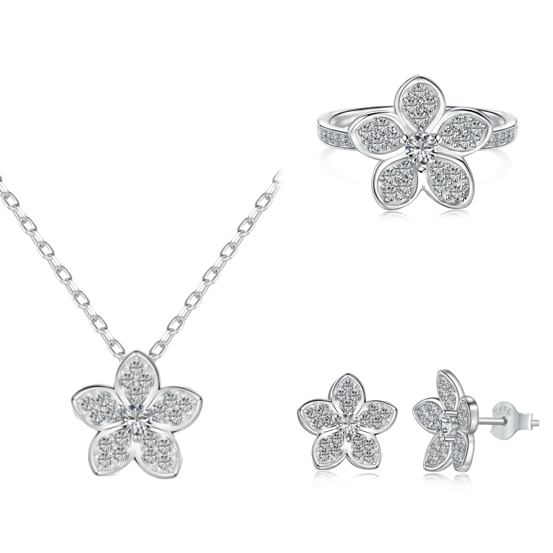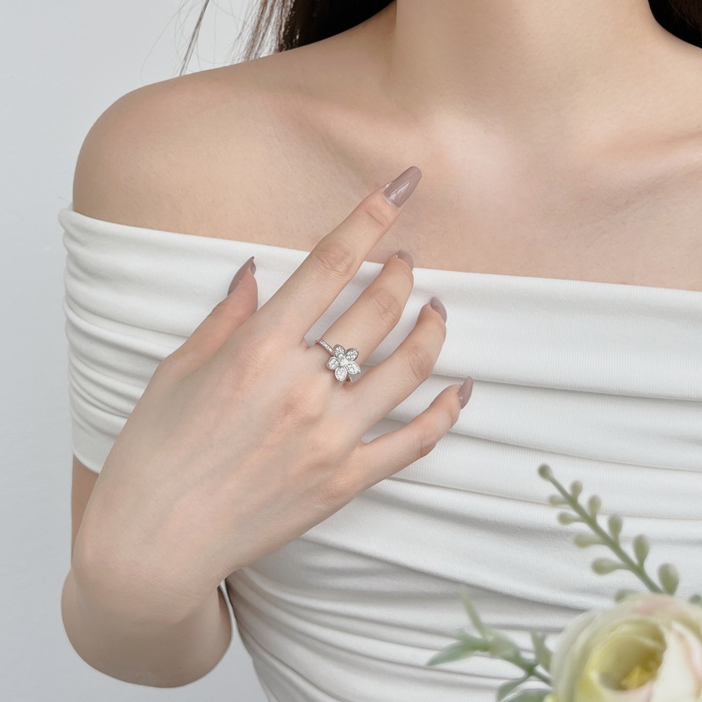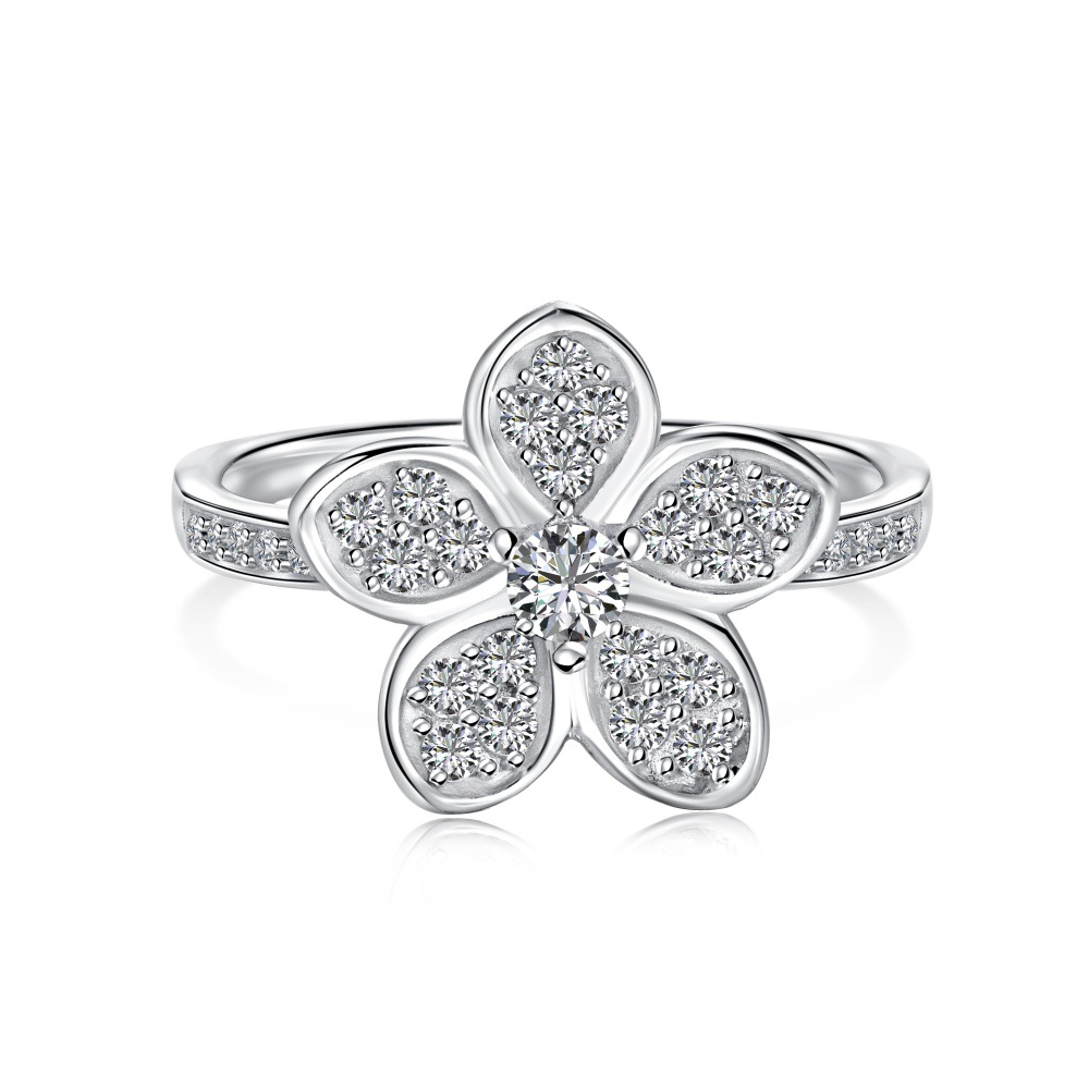Product: Wholesale 925 Sterling Silver Shiny Zirconia Flower Solitaire Ring 70200201.