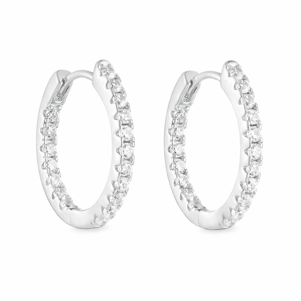 925 Sterling Silver Single Row CZ Hoop Earrings 60200328
