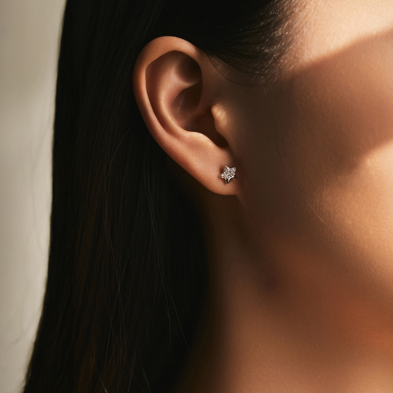 925 Sterling Silver Sparkle Zirconia Star Stud Earring 40200556