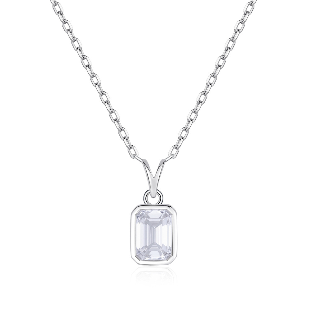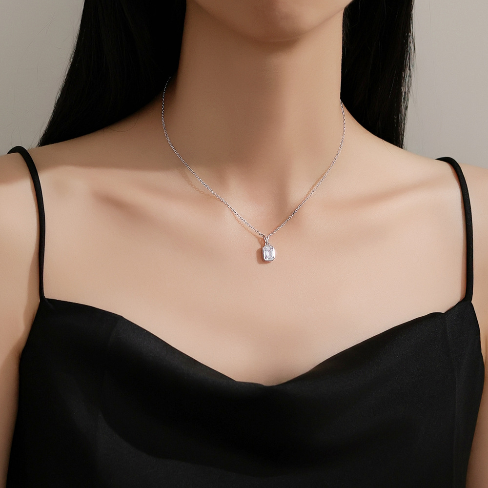 Wholesale minimalist necklaces in 925 sterling silver featuring a square-cut zircon pendant. With a clean, modern bezel setting, this necklace is perfect for jewelry retailers, resellers, and online shops seeking versatile wholesale silver jewelry. Popular for both everyday wear and special occasions, this piece is a reliable addition to any bulk jewelry collection.
