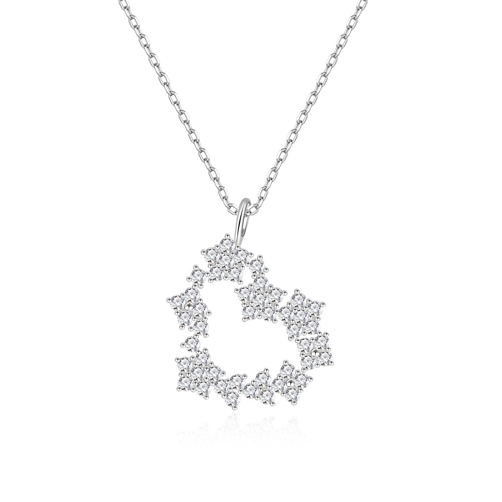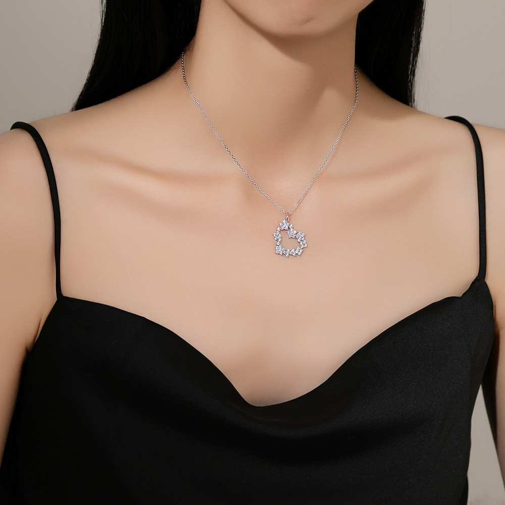 Wholesale heart pendant necklaces crafted in premium 925 sterling silver with a luxury micro-pave full cz star design. Featuring a hollow heart shape encrusted with sparkling cubic zirconia, this European-inspired necklace is perfect for jewelry retailers, online shops, and boutiques. A best-selling wholesale silver jewelry piece that combines modern elegance with timeless charm.
