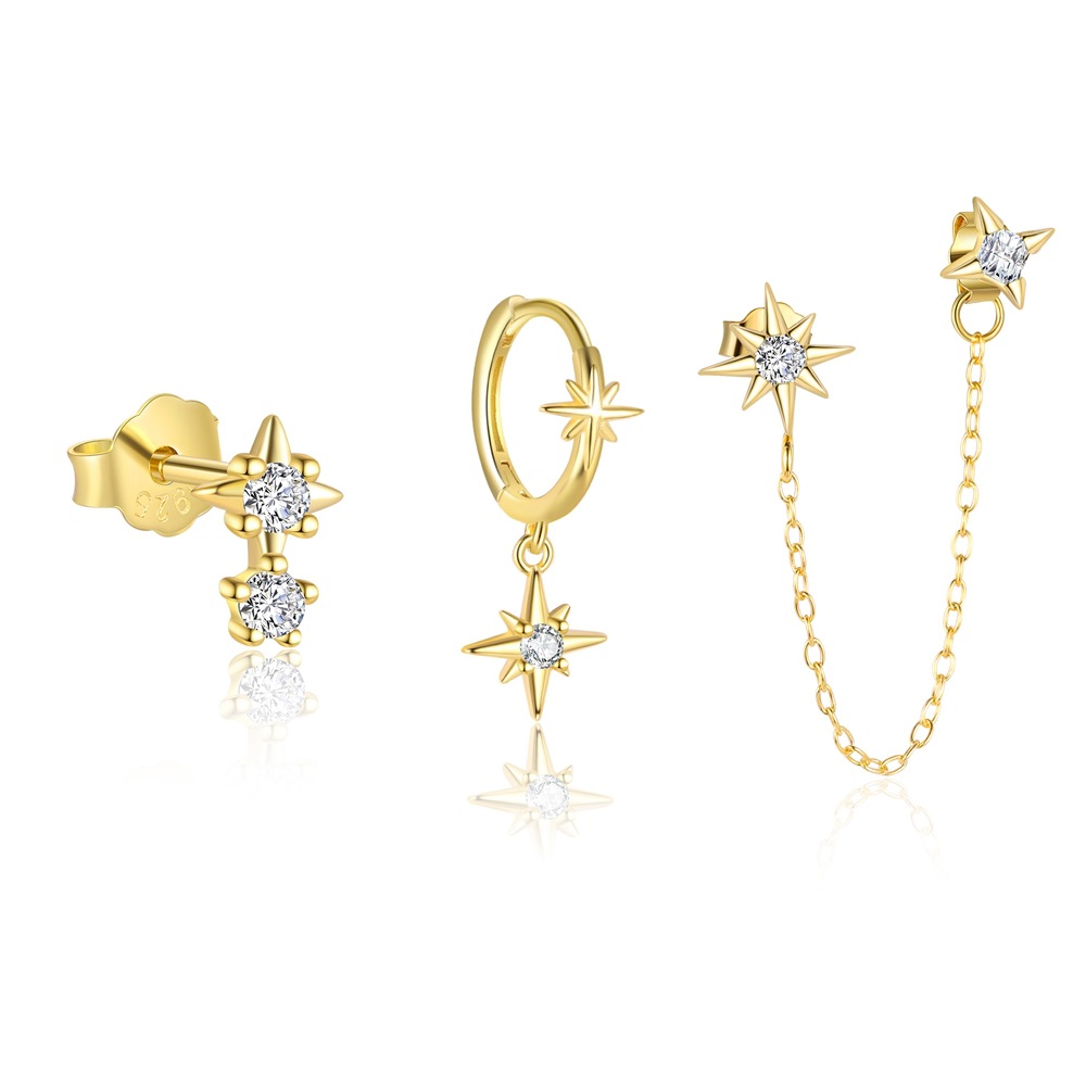 925 Sterling Silver Star Zirconia Earring Set 140100036