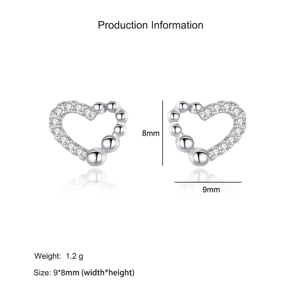 925 Sterling Silver Sweet Beaded Heart Zircon Stud Earring 40200720