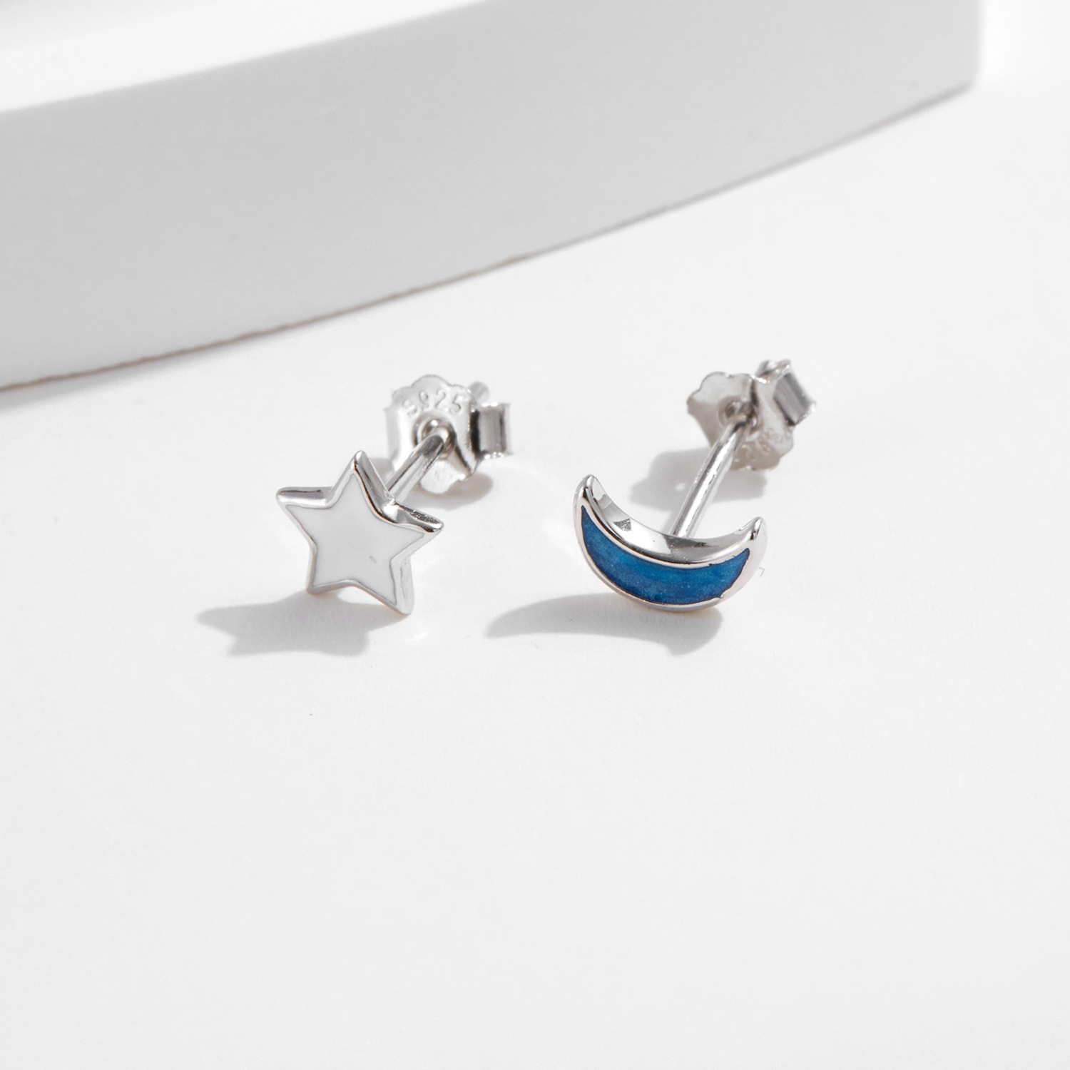 925 Sterling Silver Sweet Moon Star Stud Earring 40400091
