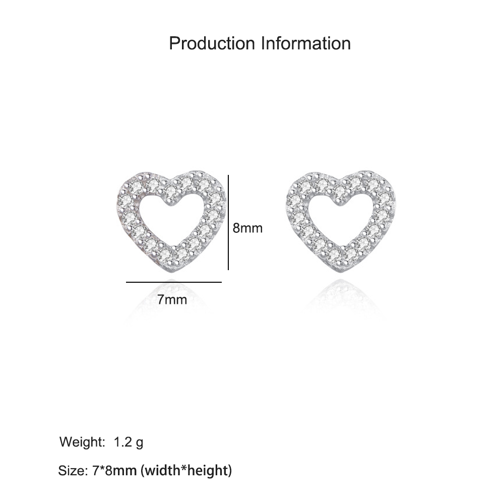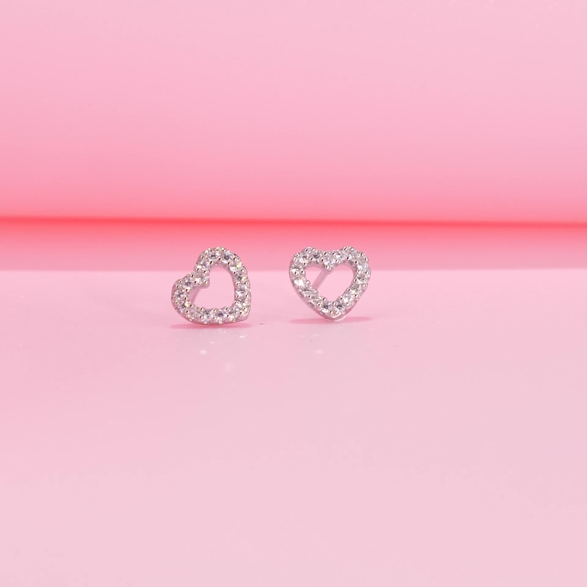 Show your romantic side with these 925 sterling silver open heart CZ stud earrings. Designed with a dainty heart outline encrusted in shimmering cubic zirconia, these earrings capture timeless sweetness and everyday sparkle. Crafted from genuine sterling silver with a mirror-polished rhodium finish, they’re hypoallergenic, lightweight, and comfortable for daily wear. Perfect for gifting or self-love, these sparkling heart studs add a subtle yet charming accent to any outfit.