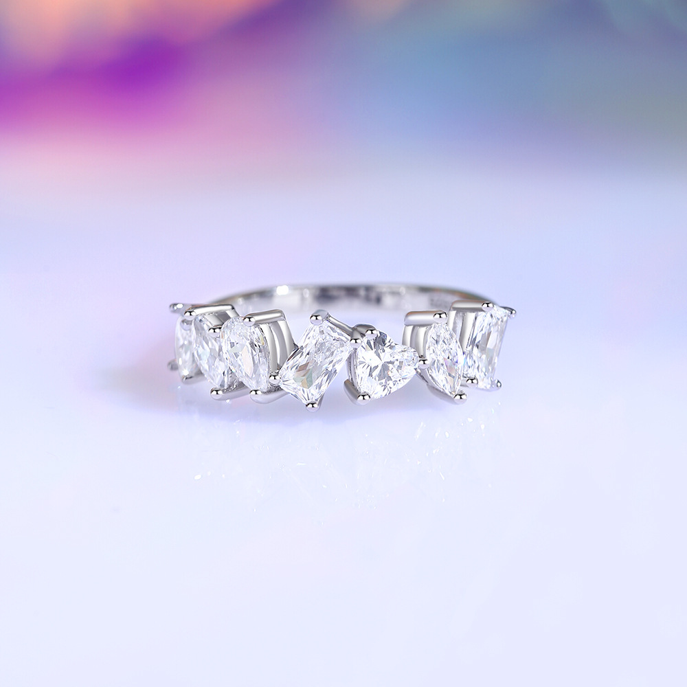 This elegant 925 sterling silver ring combines a refined cold-tone aesthetic with alternating teardrop and baguette-cut cubic zirconia stones, creating a sophisticated balance of sparkle and structure. The light luxury design is perfect for stacking or wearing solo, making it a versatile piece for both everyday minimalism and elevated occasions. Ideal for wholesale 925 silver jewelry collections looking to appeal to trend-conscious customers who favor understated yet eye-catching styles.