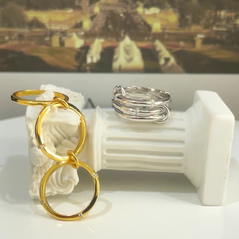 Source a high-impact, easy-sell inventory item with our 925 Sterling Silver Tri-Band Pave CZ Stacked Ring. This design is highly marketable as it appeals to the stacking trend while simplifying the purchase for the customer (only one ring size to manage). The bold three-band layered look, combined with the continuous sparkle of the micro-pave CZ, ensures strong aesthetic value and high perceived quality. Crafted from authentic S925 sterling silver, this piece provides reliable quality and excellent retail margins. This is an ideal, fast-selling statement piece for bulk purchase. Available for competitive wholesale pricing.