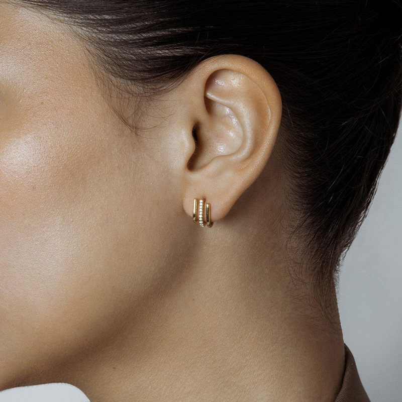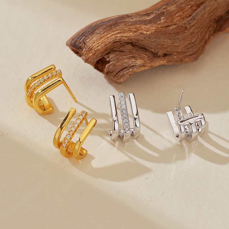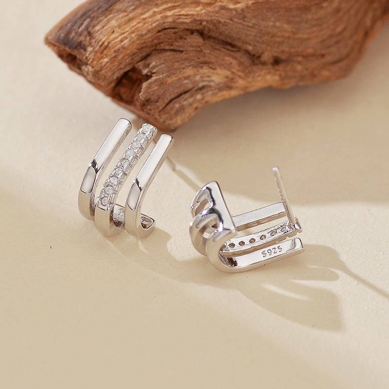 Source a trending, high-impact inventory item with our 925 Sterling Silver Triple-Layer Pave CZ J-Shaped Huggie Studs. This design is highly marketable, capitalizing on the demand for layered jewelry and the luxury appeal of multiple rows of pave CZ. The secure, open J-shape and three-tiered structure provide maximum perceived value and a sophisticated, architectural look. Crafted from authentic S925 sterling silver, this piece offers reliable quality and strong retail margins, making it an excellent, fast-selling item for bulk purchase. Available for competitive wholesale pricing.