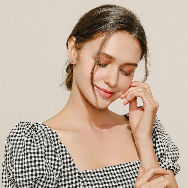 925 Sterling Silver Turquoise Fatima Hand Stud Earring 40200108