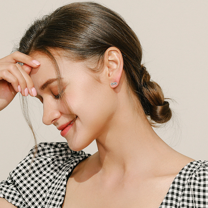 925 Sterling Silver Turquoise Infinity Stud Earrings 40200182