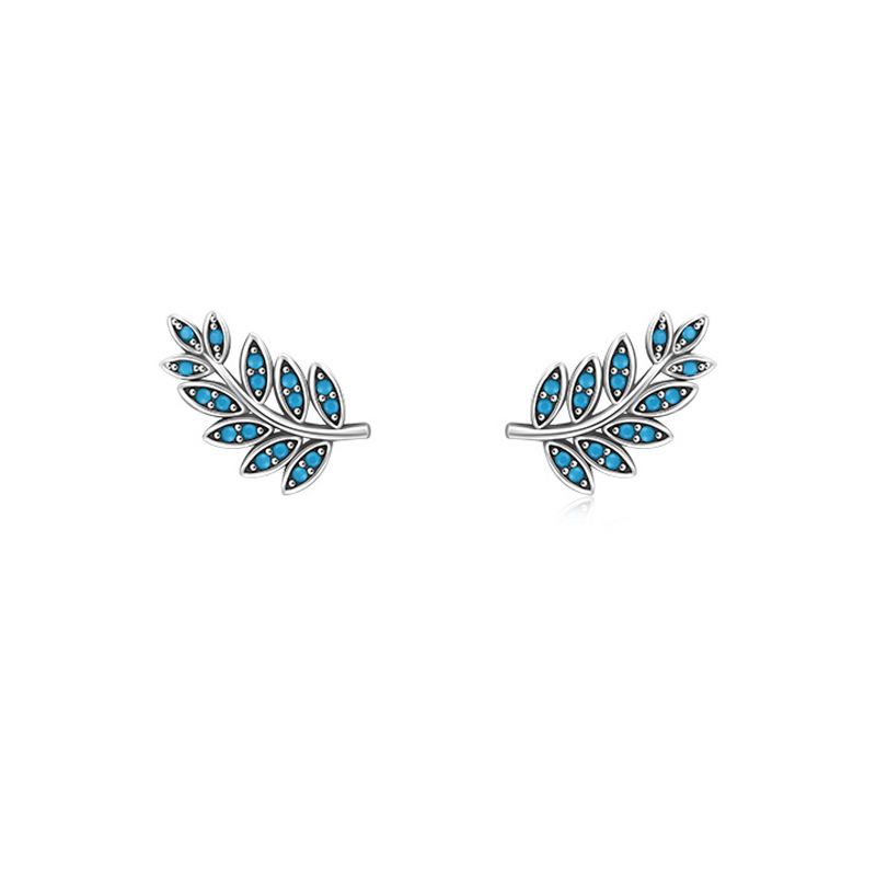 925 Sterling Silver Turquoise Leaf Stud Earring 40200109