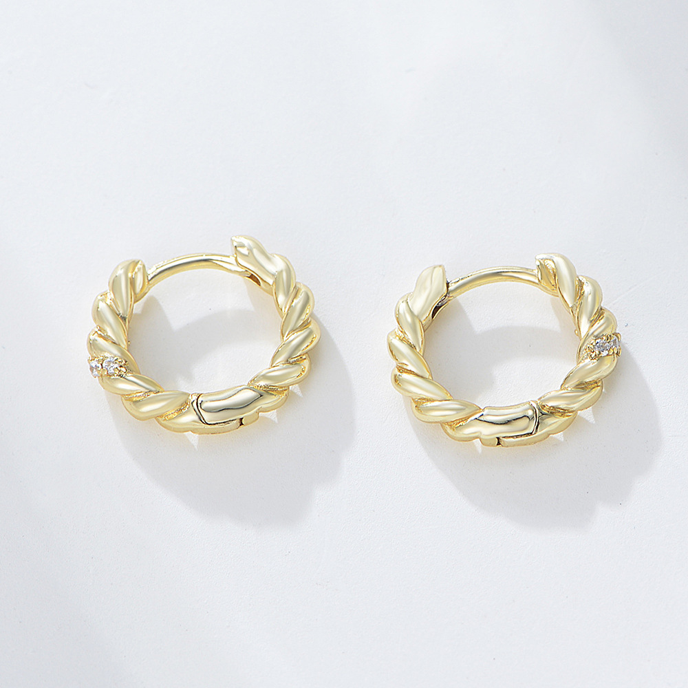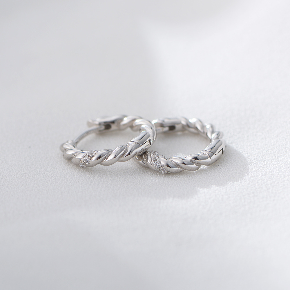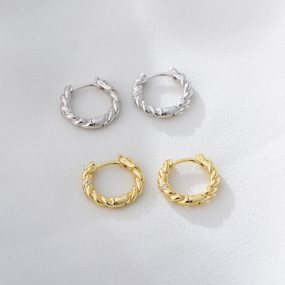 Combine texture and sparkle in your inventory with our Wholesale 925 Sterling Silver Twisted Cable Pave Huggies. The "Twisted/Rope" design is a consistent best-seller, often associated with the popular "Croissant" jewelry trend. This SKU differentiates itself with a strategic placement of pave cubic zirconia, adding a touch of luxury without overwhelming the minimalist aesthetic. Manufactured from solid S925 sterling silver, these earrings are perfect for customers seeking versatile, high-quality daily wear.