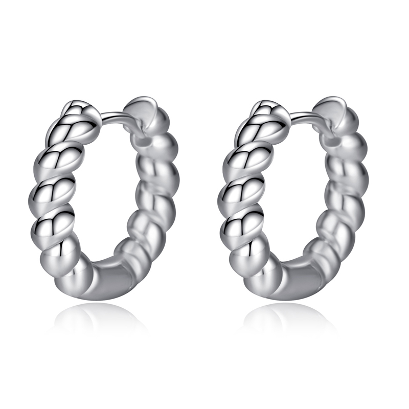 Expand your collection with these wholesale 925 sterling silver twisted rope hoop earrings, finished in polished 14k gold/rhodium plating. A trendy textured design popular among boutiques, fashion jewelry retailers, and online shops. Available in bulk at competitive prices.