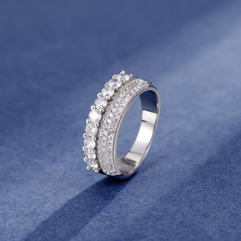 Product: Wholesale 925 Sterling Silver Two Layers Zirconia Band Ring 70100298.