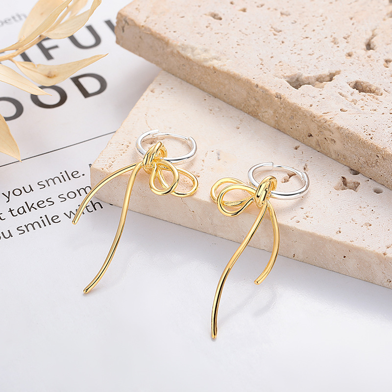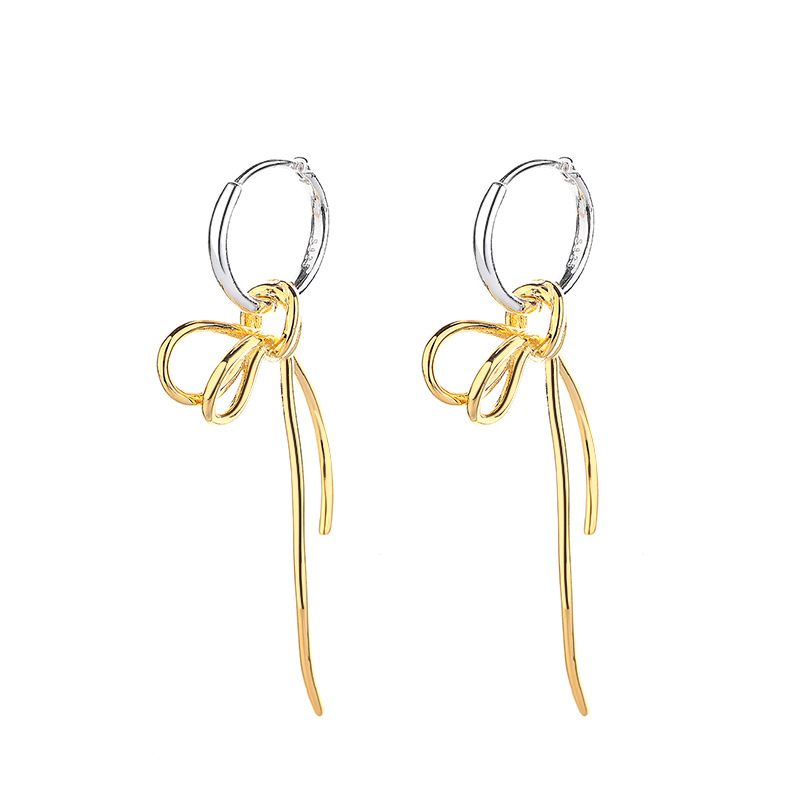 Source a high-demand, on-trend style with our 925 Sterling Silver Two-Tone Bow Drop Hoop Earrings. This piece features a fashionable two-tone design (silver-plated hoop and gold-plated bow) that maximizes market appeal. The playful bowknot drop is attached to a secure hinged hoop. Crafted from authentic S925 sterling silver, this item offers excellent quality and a highly marketable aesthetic. Its unique and versatile design makes it a reliable and profitable addition to your inventory. Available for bulk purchase at competitive wholesale prices.