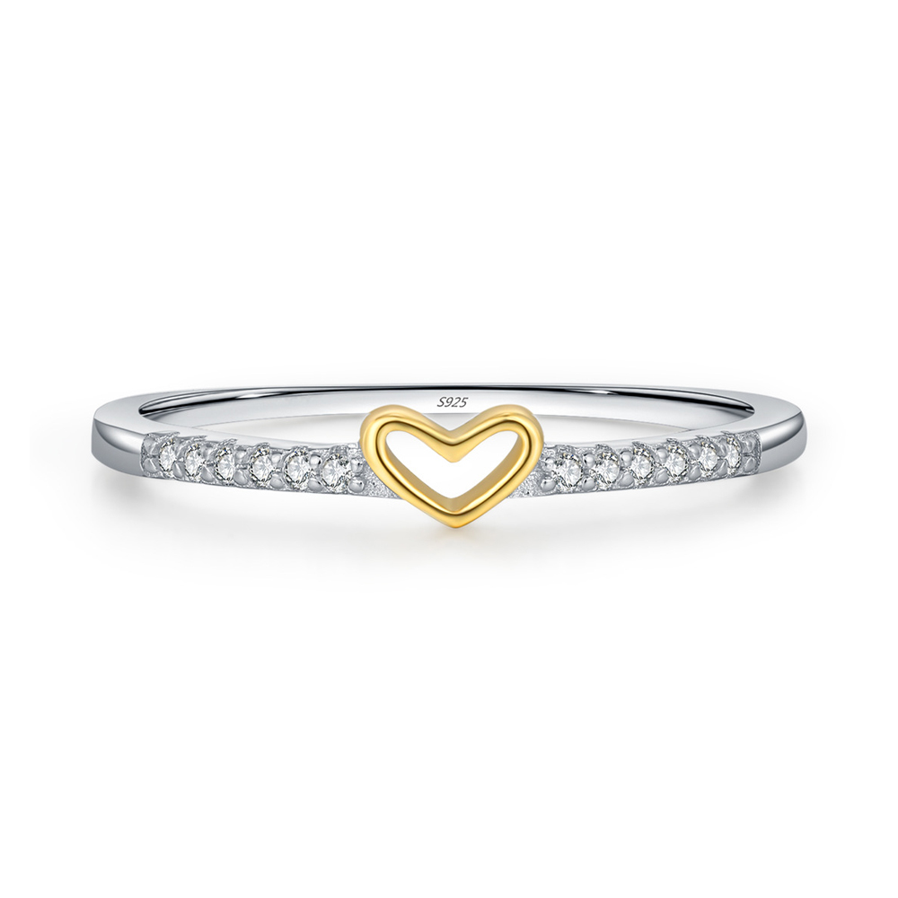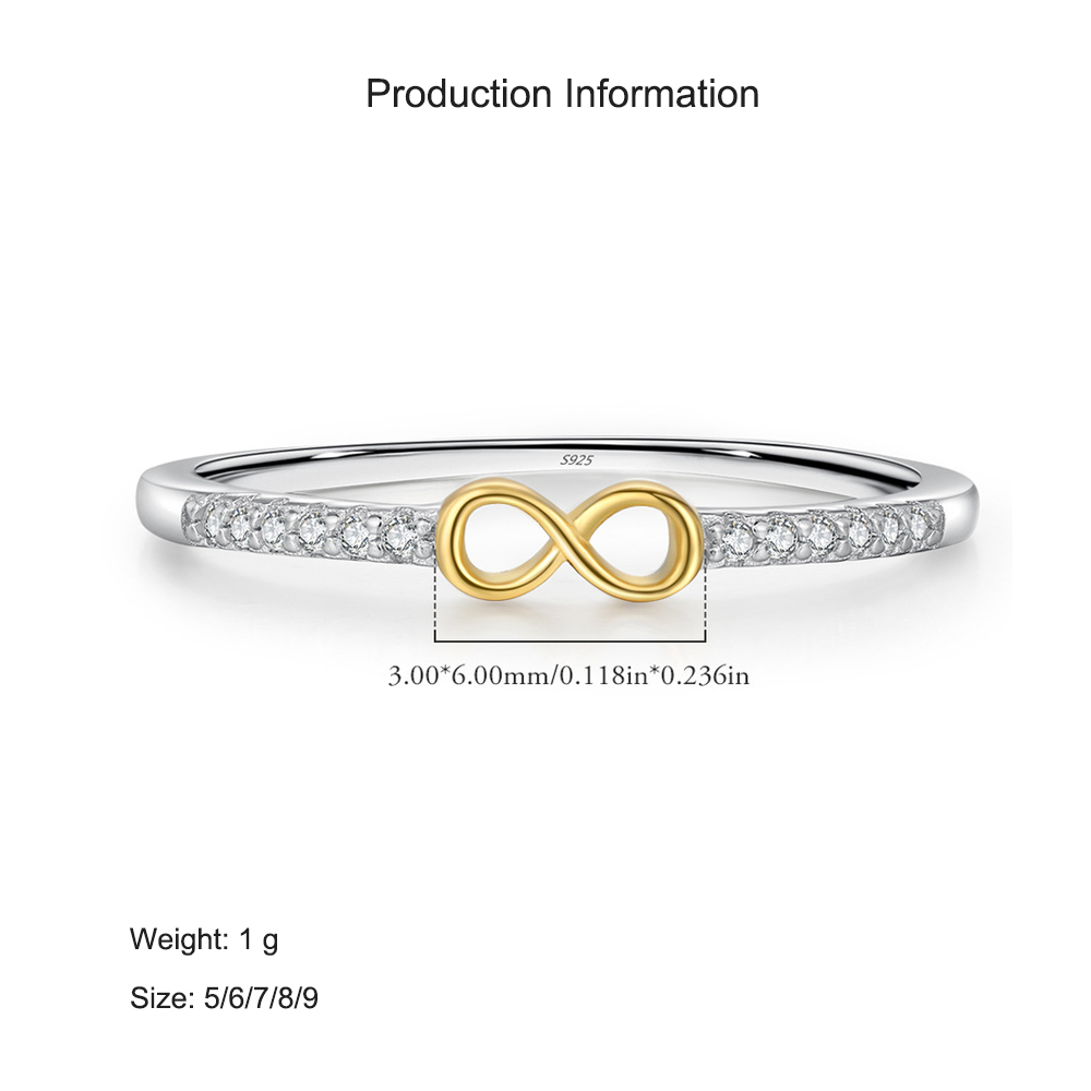 Symbolizing eternal love and endless connection, this 925 sterling silver ring features a unique infinity heart design in a chic two-tone style with gold plating. Sparkling cubic zirconia stones are delicately set along the band, adding brilliance and elegance to its timeless meaning. Perfect as a promise ring, couple’s gift, or a stylish everyday accessory, this infinity symbol ring beautifully combines sentiment and fashion. A standout choice for women’s silver jewelry collections and wholesale assortments.