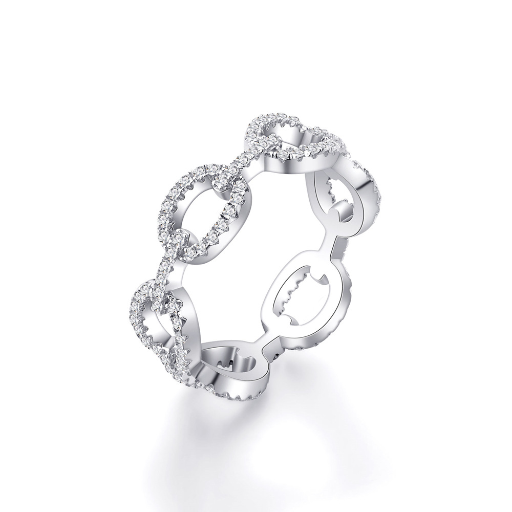 Product: Wholesale 925 Sterling Silver Linked Chain Zirconia Band Ring 70100282.