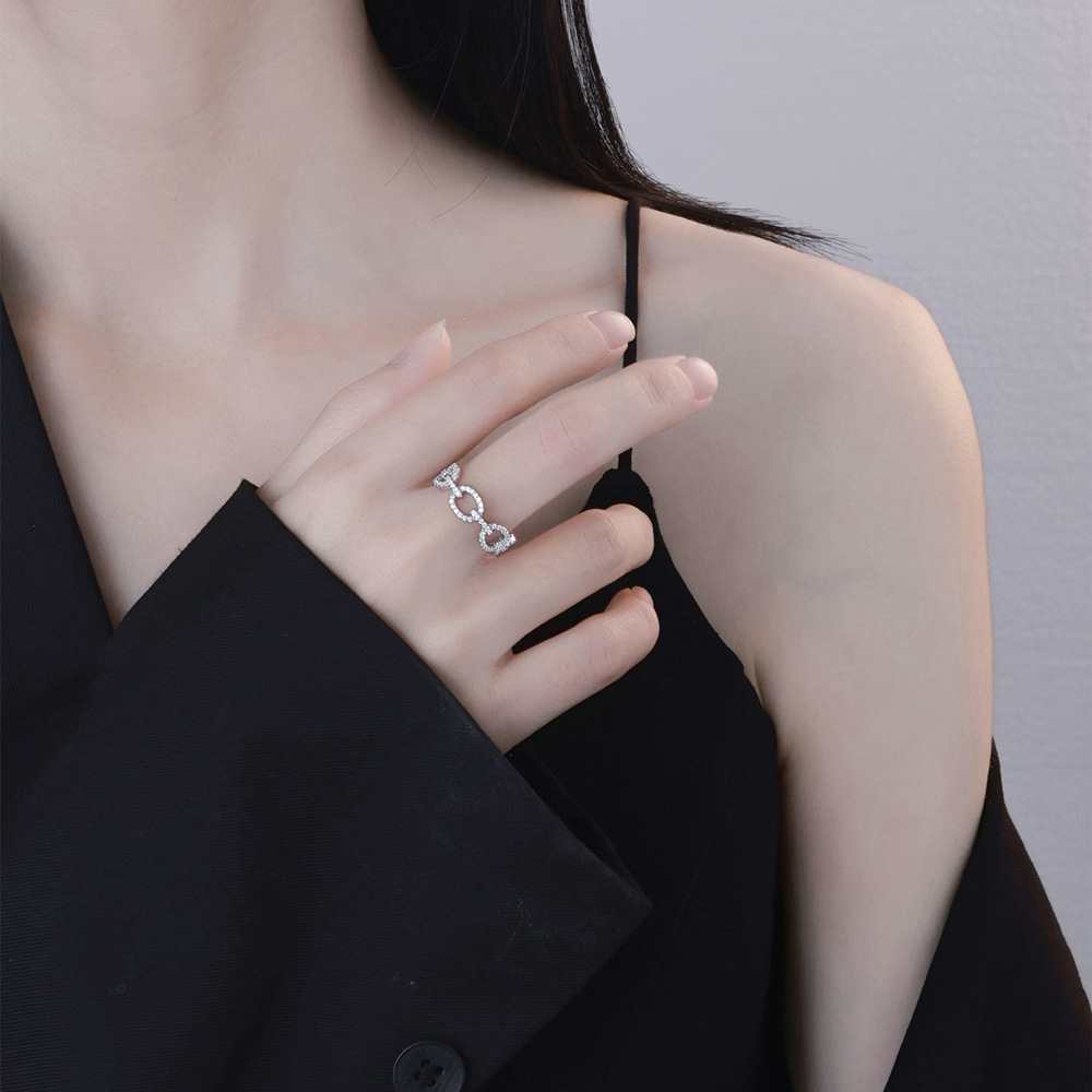 925 Sterling Silver Unique Chain Zirconia Band Ring 70100282