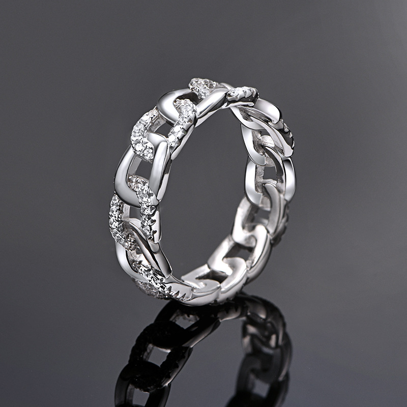 Product: Wholesale 925 Sterling Silver Linked Chain Zirconia Band Ring 70100281.