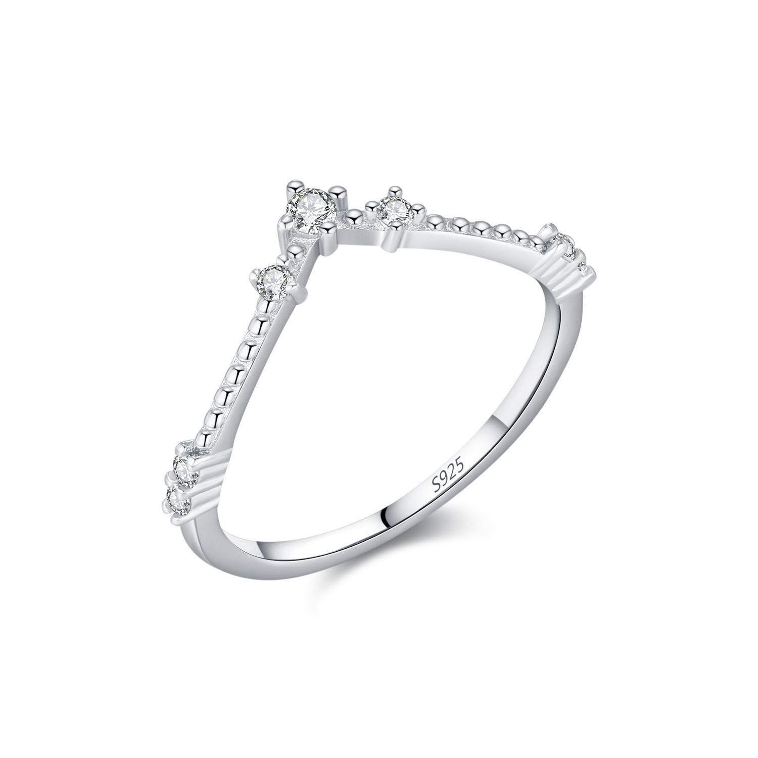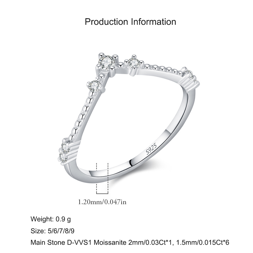 This elegant V-shaped ring is crafted from high-quality 925 sterling silver and set with sparkling moissanite stones for a refined and modern look. Its slim, delicate band creates a chic silhouette, perfect for stacking or wearing as a standalone piece. Inspired by minimalist Japanese and Korean fashion, this ring adds a touch of sophistication and luxury to any outfit. Ideal for weddings, engagements, or everyday wear, it makes a versatile addition to any jewelry collection.