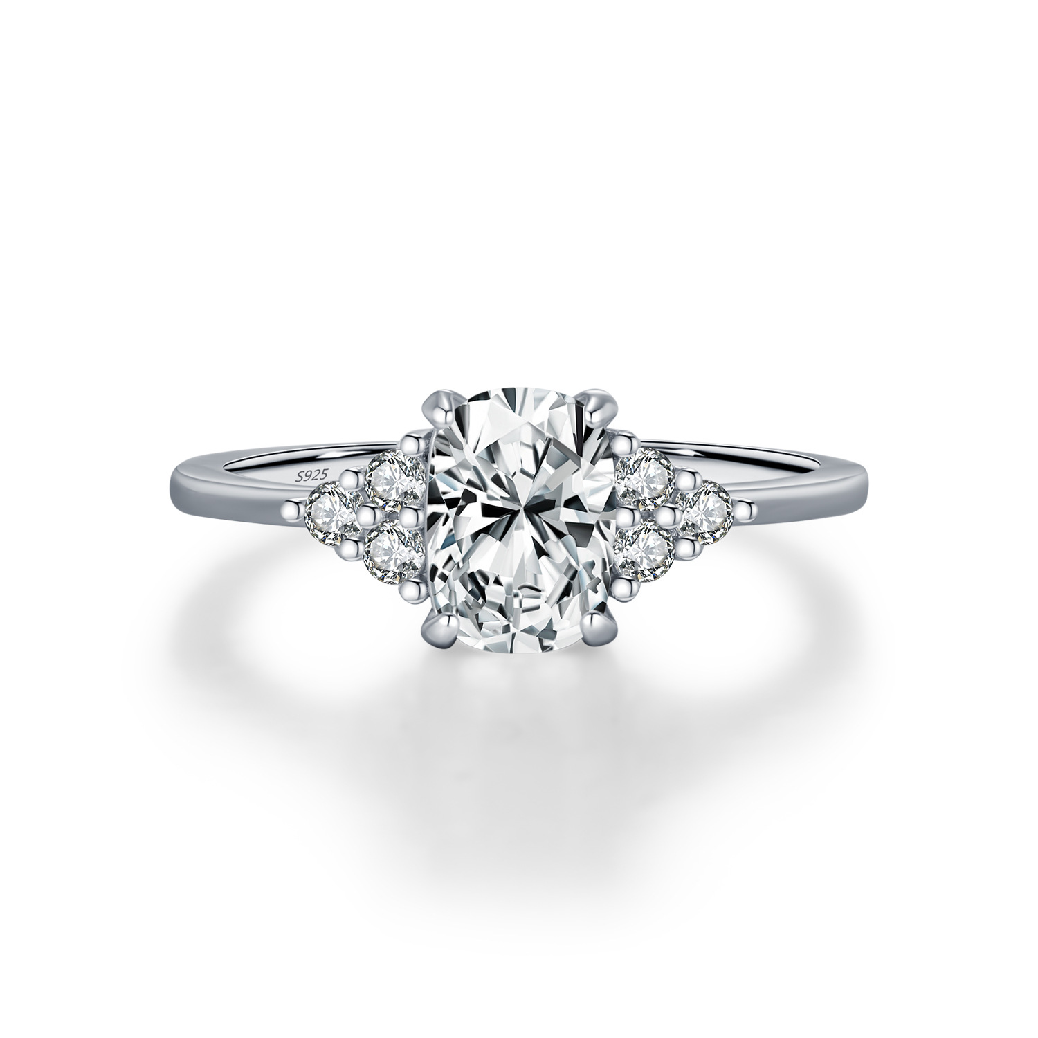 Elevate your bridal and fine jewelry assortment with our Wholesale 925 Sterling Silver 1ct Oval Moissanite Ring. The "Oval Cut" is currently one of the most trending shapes for engagement rings, and this SKU delivers the look at a fraction of the cost of diamond jewelry. The design features a premium 1-carat Moissanite center stone accented by cubic zirconia side clusters, creating a "Light Luxury" aesthetic that appeals to modern consumers. This is a high-value item perfect for "Affordable Bridal," "Anniversary," or "Statement Ring" collections.